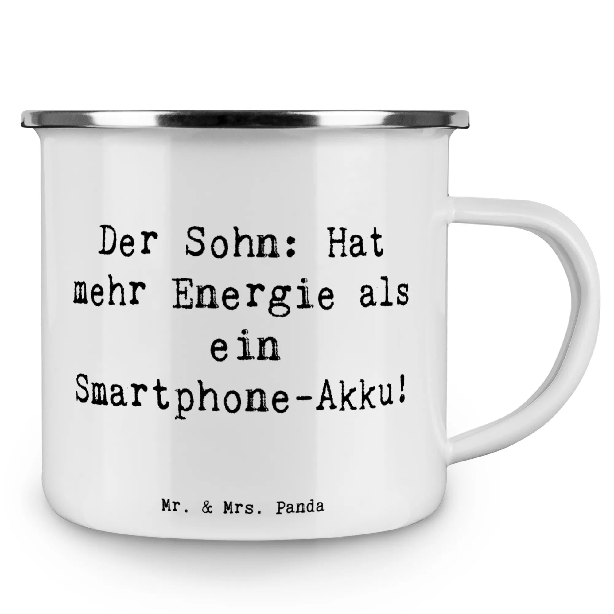 Enamel camping mug Saying Der Sohn: Hat mehr Energie als ein Smartphone-Akku!