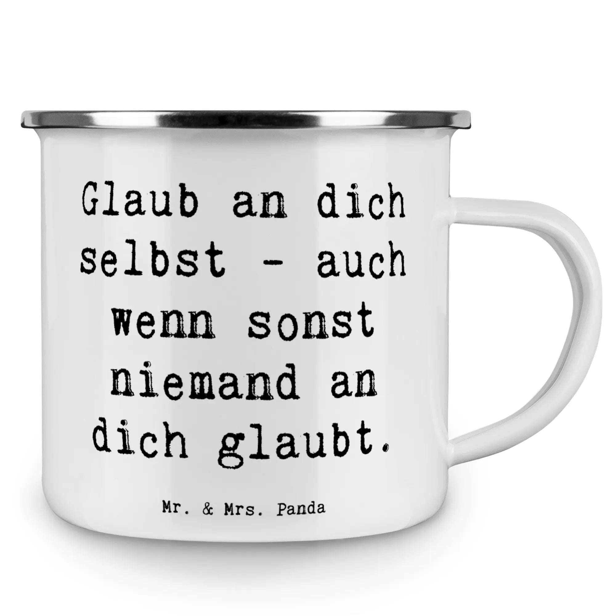 Enamel camping mug Saying Glaub an dich selbst - auch wenn sonst niemand an dich glaubt.