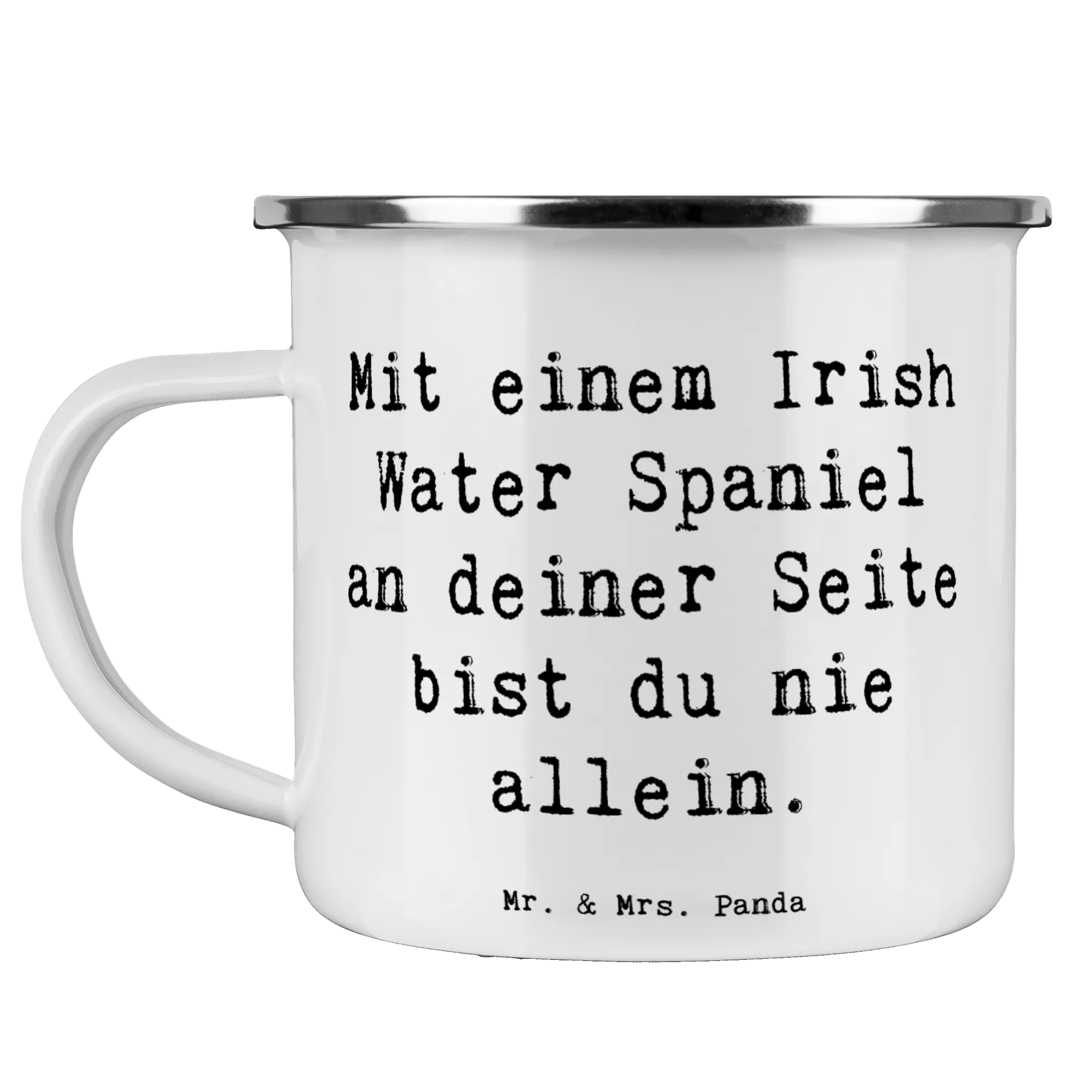 Enamel camping mug Saying Mit einem Irish Water Spaniel an deiner Seit – Mr. & Mrs. Panda