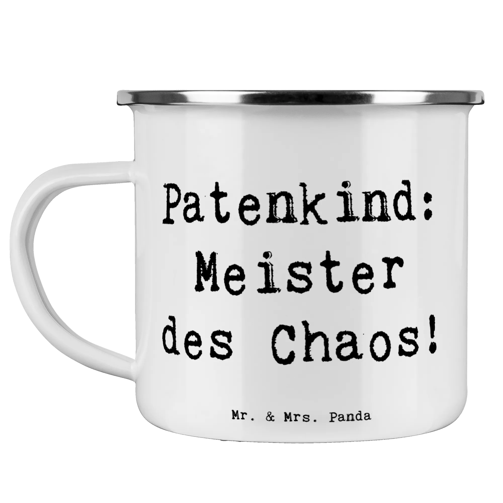 Enamel camping mug Saying Patenkind: Meister des Chaos! – Mr. & Mrs. Panda