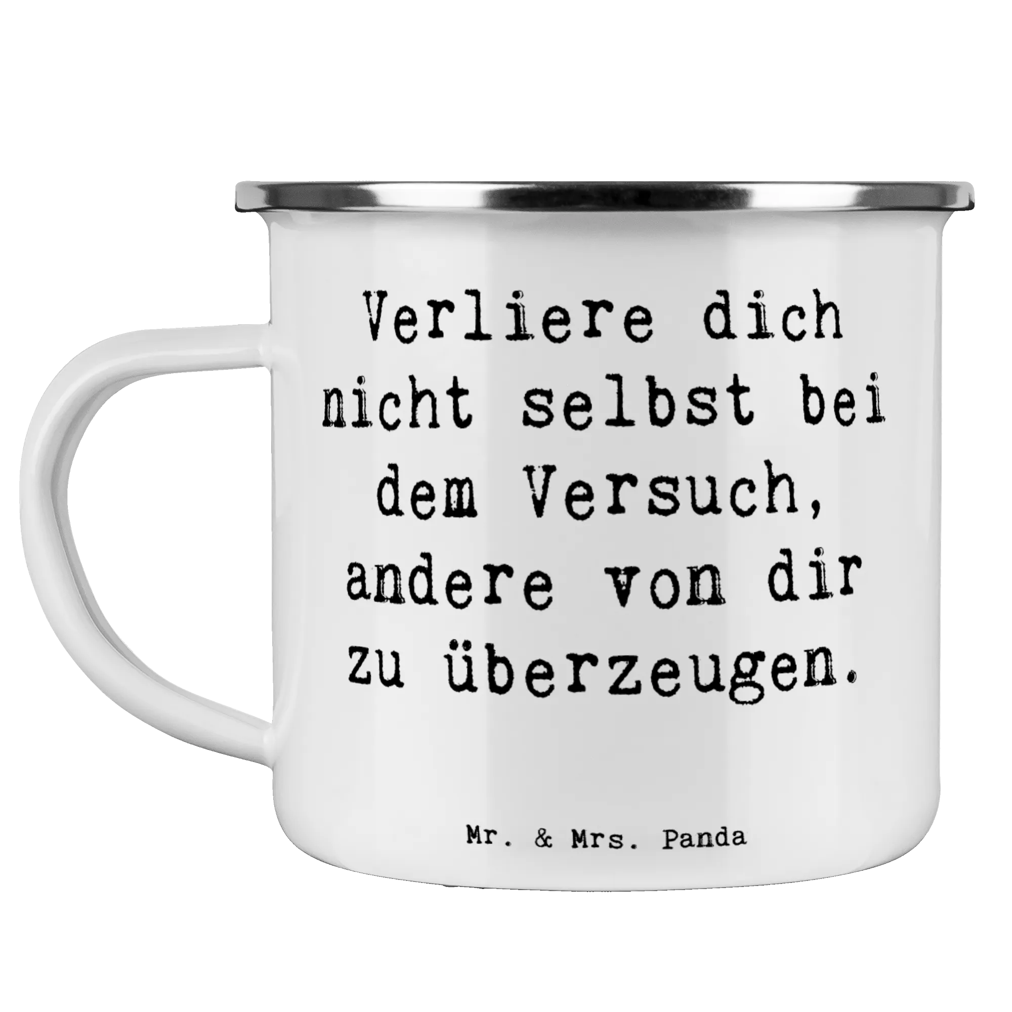Enamel camping mug Saying Verliere dich nicht selbst bei dem Versuch, andere von dir zu überzeugen.