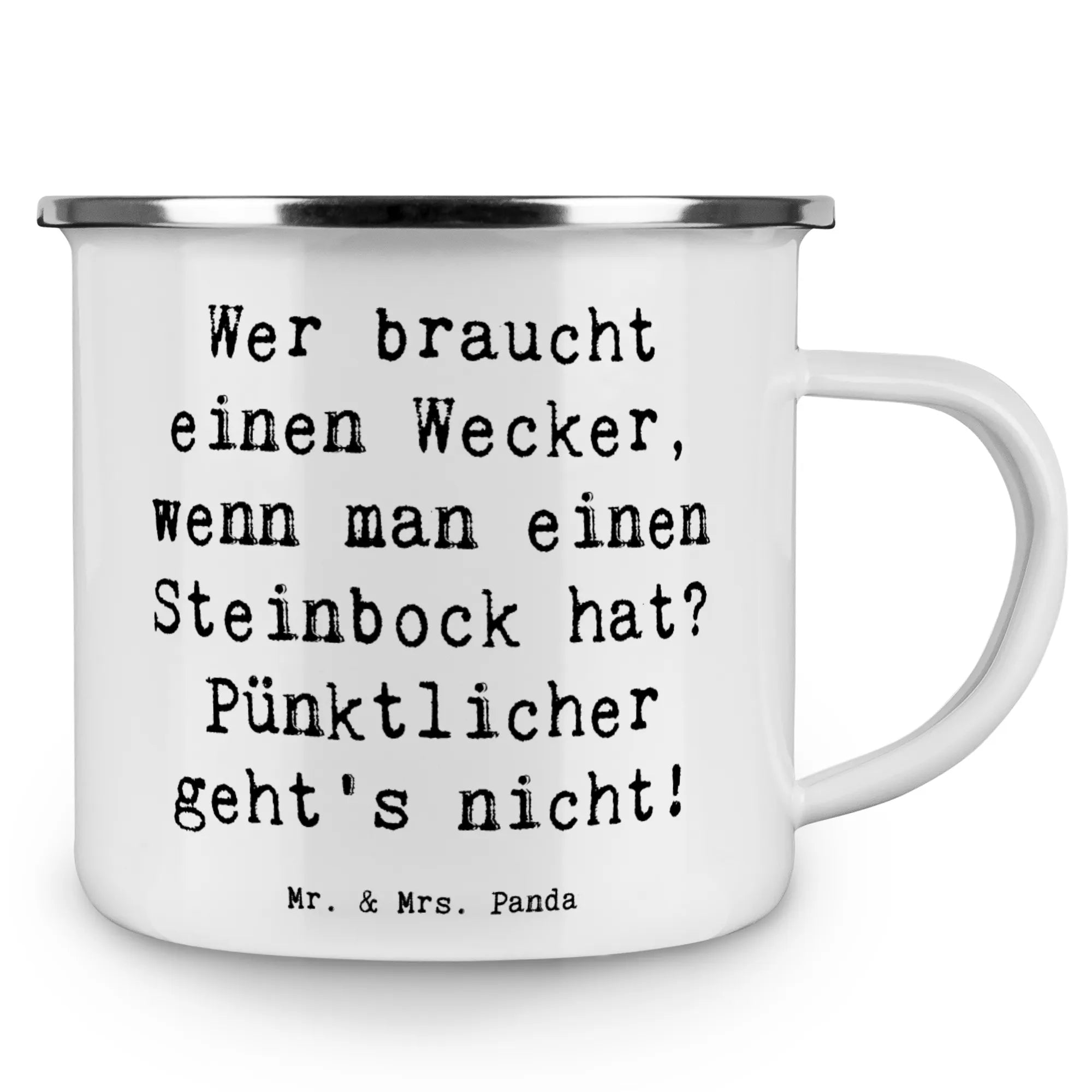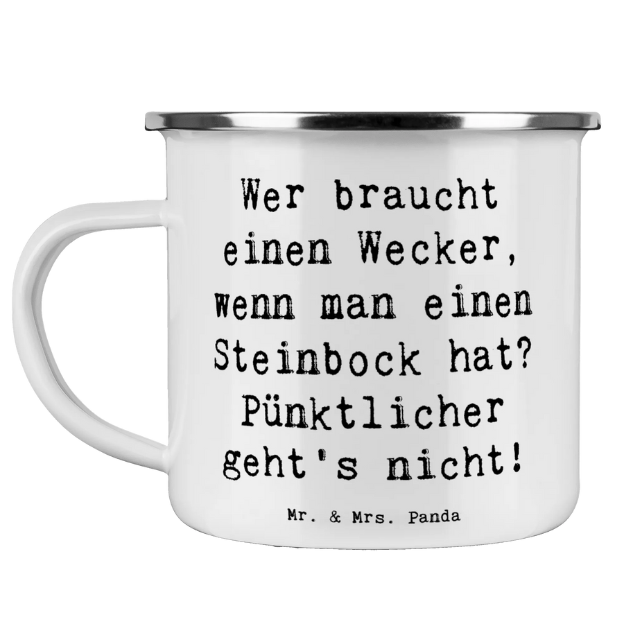 Enamel camping mug Saying Wer braucht einen Wecker, wenn man einen Steinbock hat? Pünktlicher geht's nicht!
