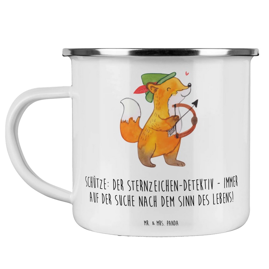 Enamel camping mug Schütze: Der Sternzeichen-Detektiv - immer auf der Suche nach dem Sinn des Lebens!
