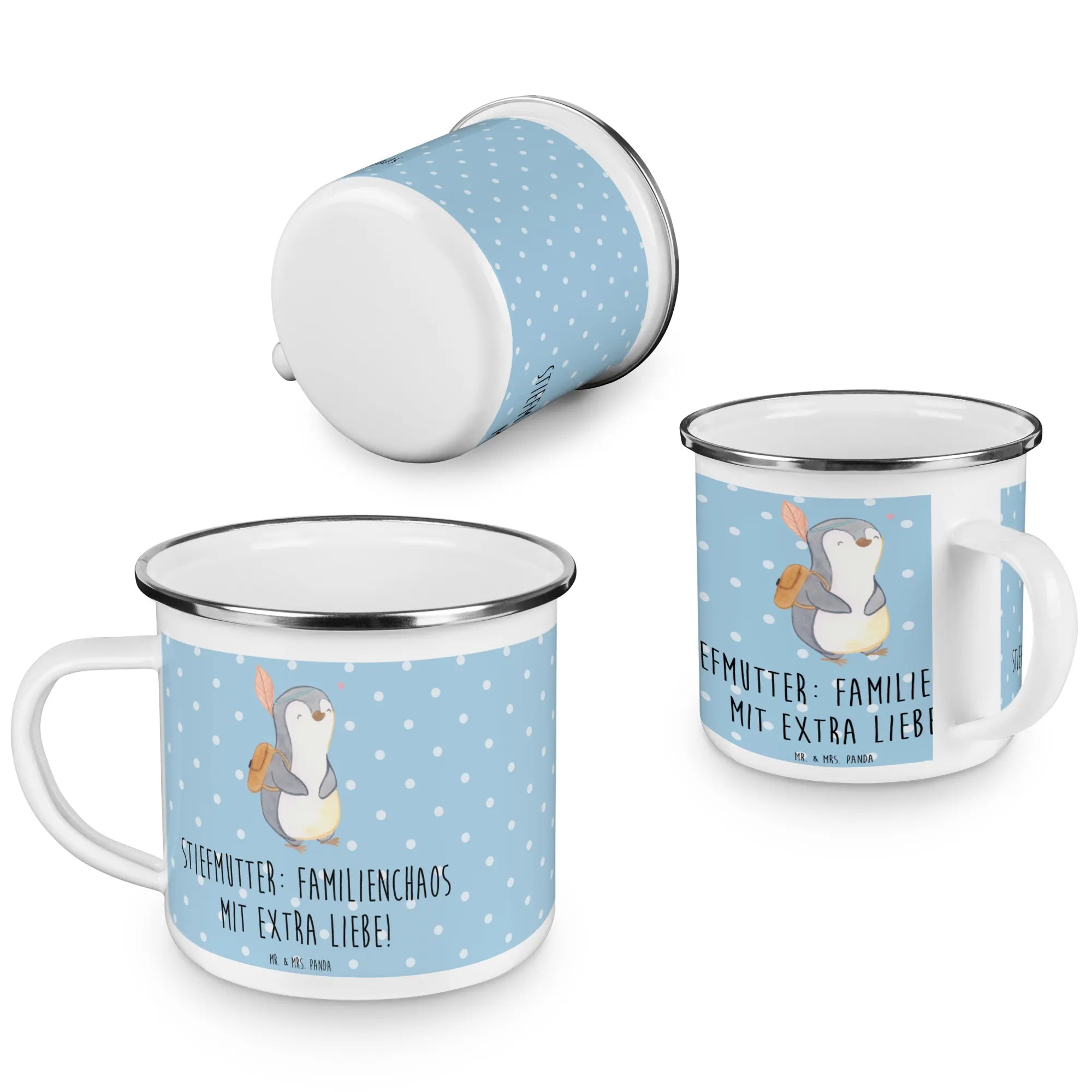 Enamel camping mug Stiefmutter: Familienchaos mit extra Liebe! - White