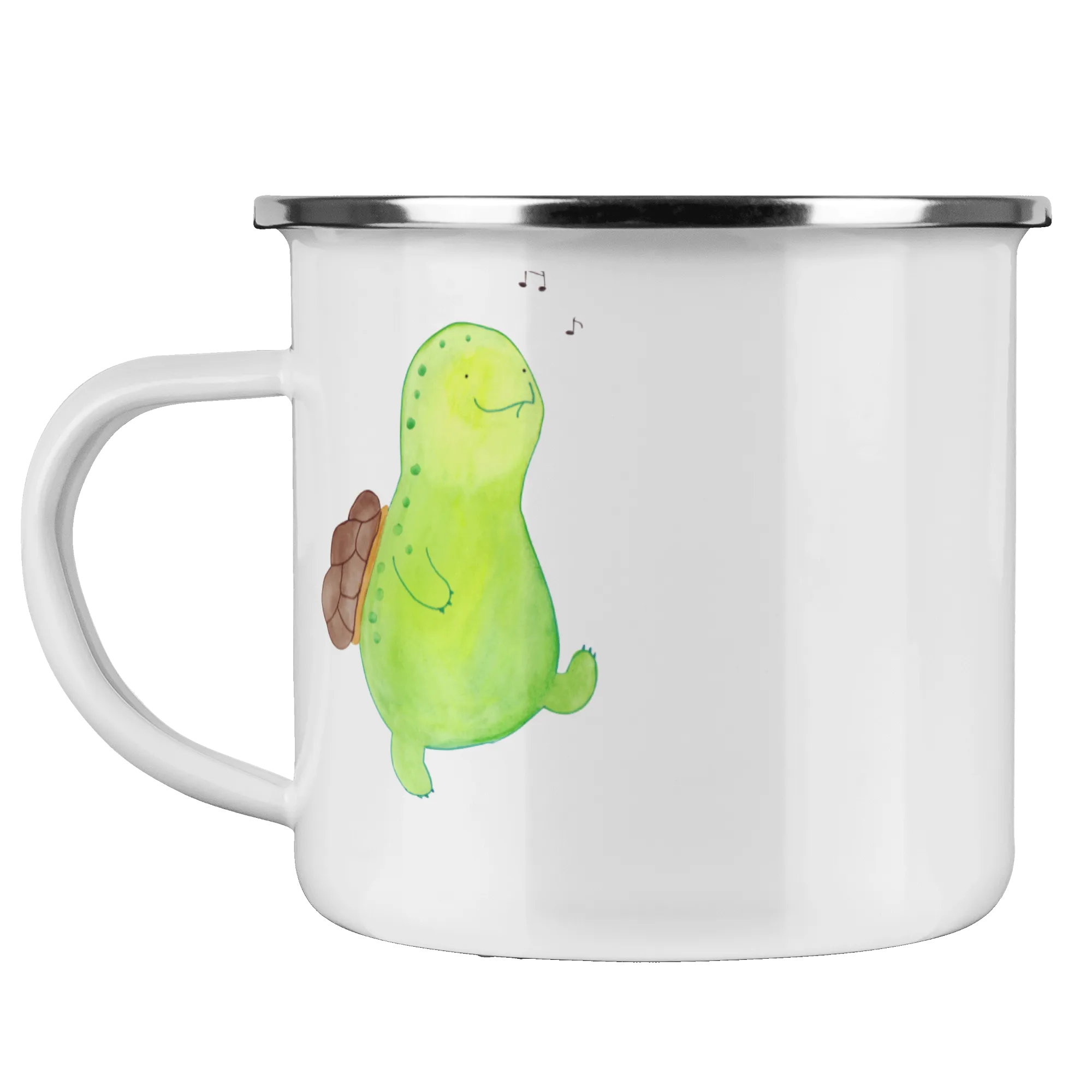 Introducing the perfect companion for your outdoor adventures—the Mr. & Mrs. Panda Whistling Turtle Enamel Camping Mug! This delightful metal cup is designed with the cute and charming motif of a happy whistling turtle, brilliantly capturing the joy of life.