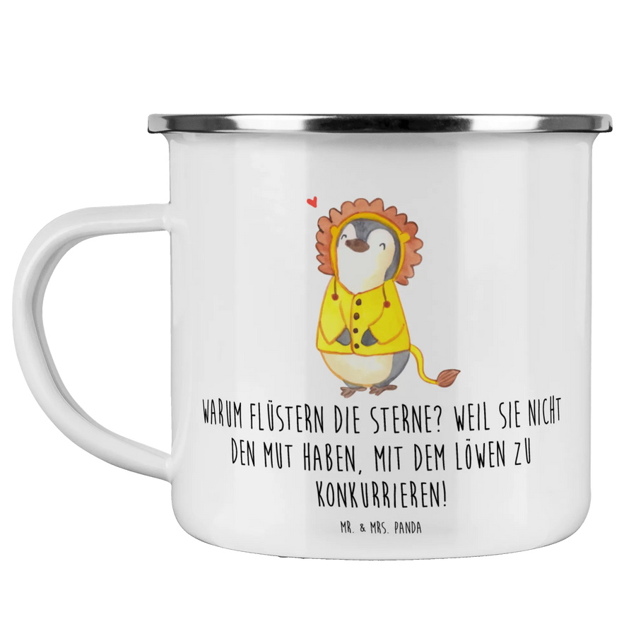 Enamel camping mug Warum flüstern die Sterne? Weil sie nicht den Mut haben, mit dem Löwen zu konkurrieren!