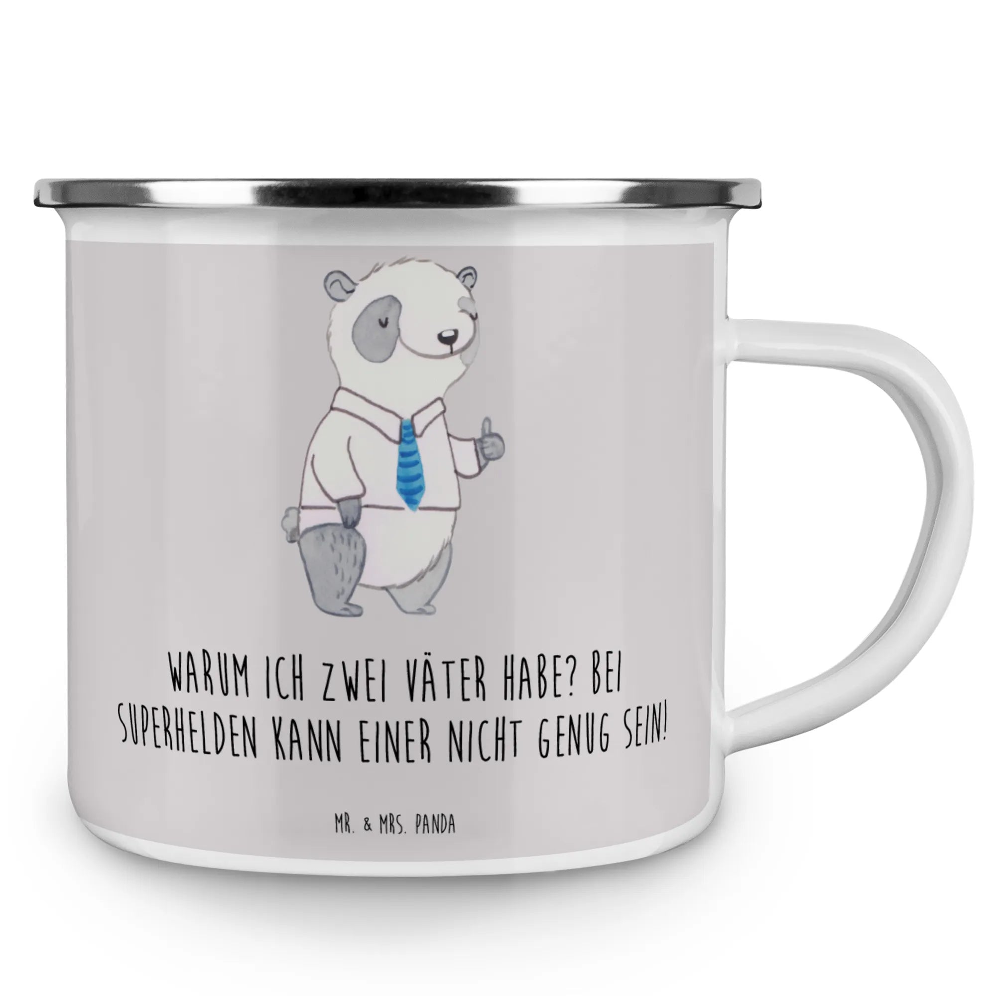 Enamel camping mug Warum ich zwei Väter habe? Bei Superhelden kann einer nicht genug sein! - White