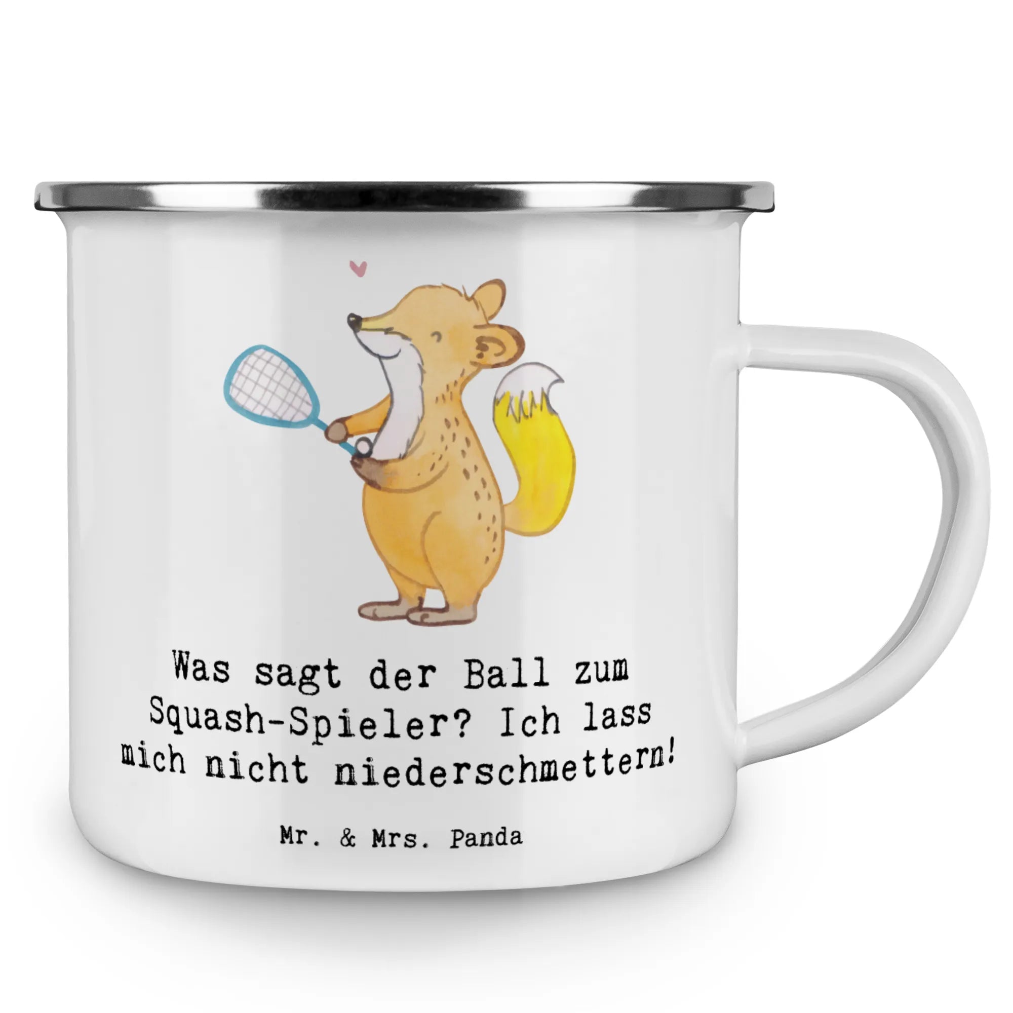 Enamel camping mug Was sagt der Ball zum Squash-Spieler? Ich lass mich nicht niederschmettern! - White