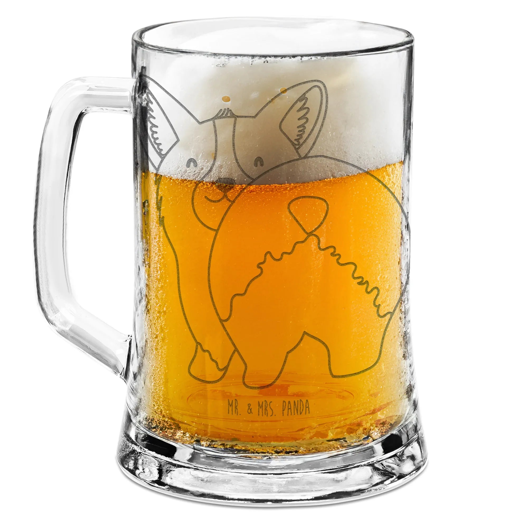 Bring elegance to your beer-drinking moments with our Engraved Beer Mug by Mr. & Mrs. Panda! This beautiful beer krug combines artistry with functionality, offering unique engravings that enhance your drinking experience. Ideal for gifting on birthdays, holidays, or special milestones, this high-quality glass mug is sure to impress. It stands 136 mm tall with a diameter of 85 mm, holding 450 ml (15 oz) of your favorite brew. Made from durable materials, this beer glass is dishwasher safe, ensuring easy cleaning. Celebrate each sip in style with this classic drinkware!