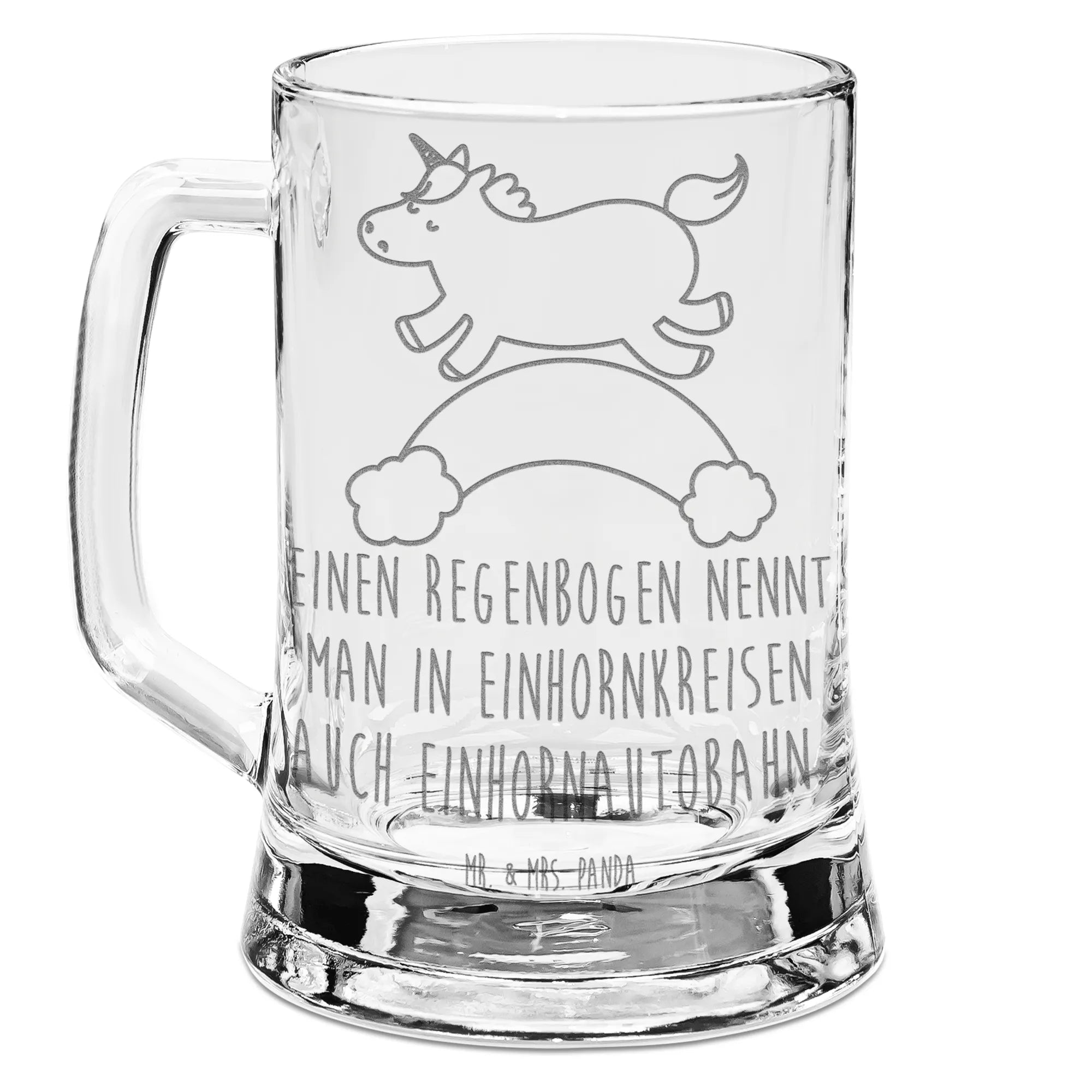 The highlight of this lovely beer mug is its enchanting unicorn rainbow motif, masterfully designed by Mrs. Panda, who pours her heart and creativity into every unique piece. The cheerful unicorn dashes across a vibrant rainbow, and there’s even a cheeky slogan included in some versions: "Einen Regenbogen nennt man in Einhornkreisen auch Einhornautobahn," which adds an extra layer of fun and whimsy to the experience!