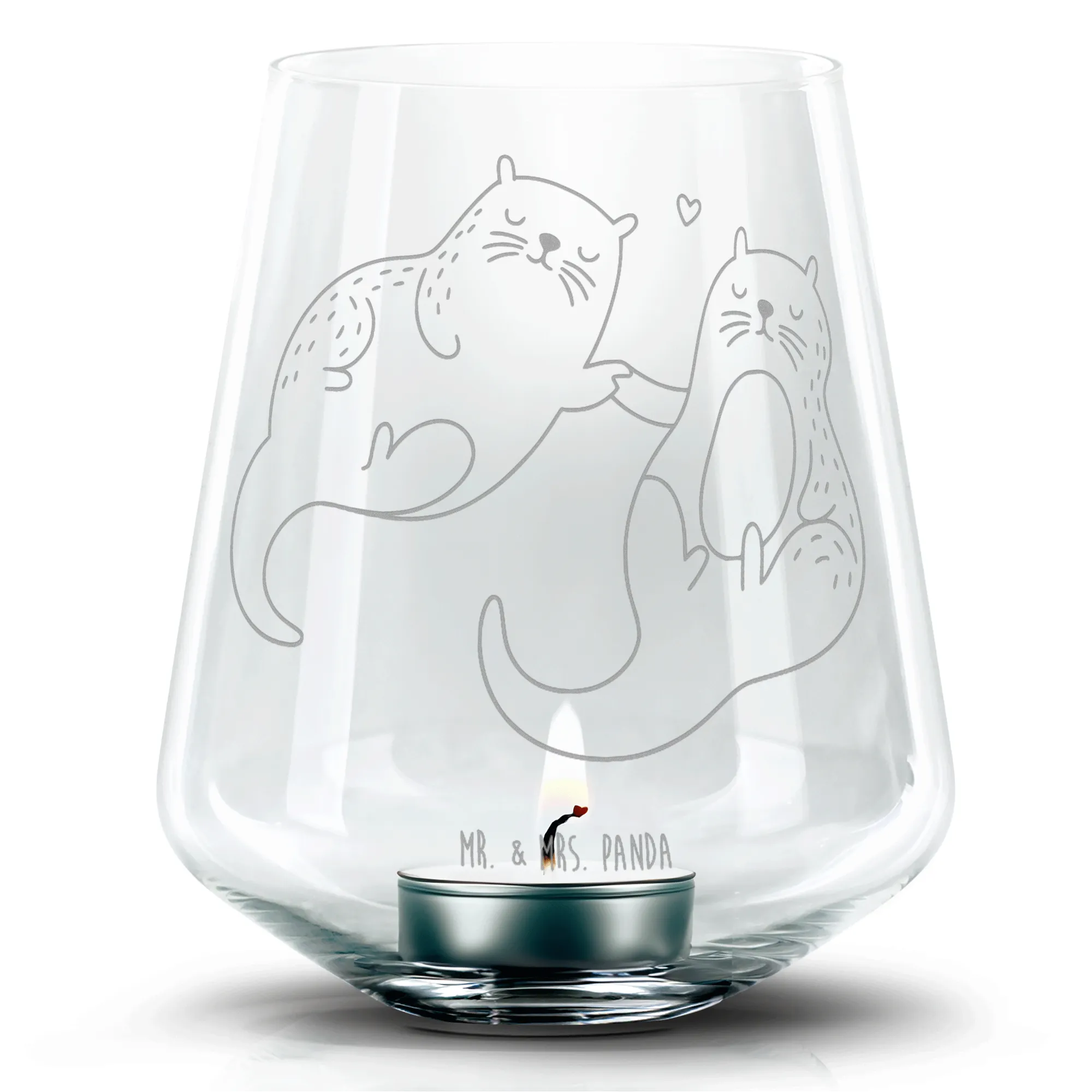 Engraved Wind Light otter holding hands - with saying
