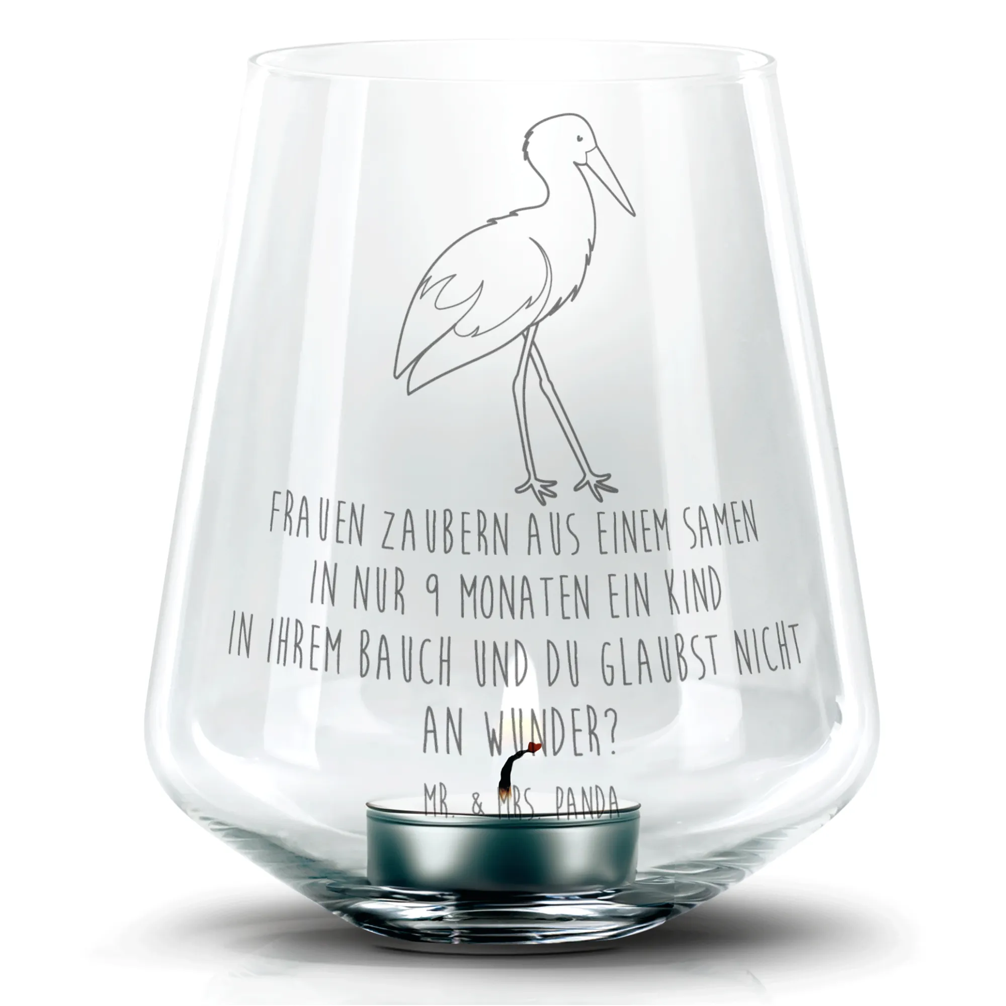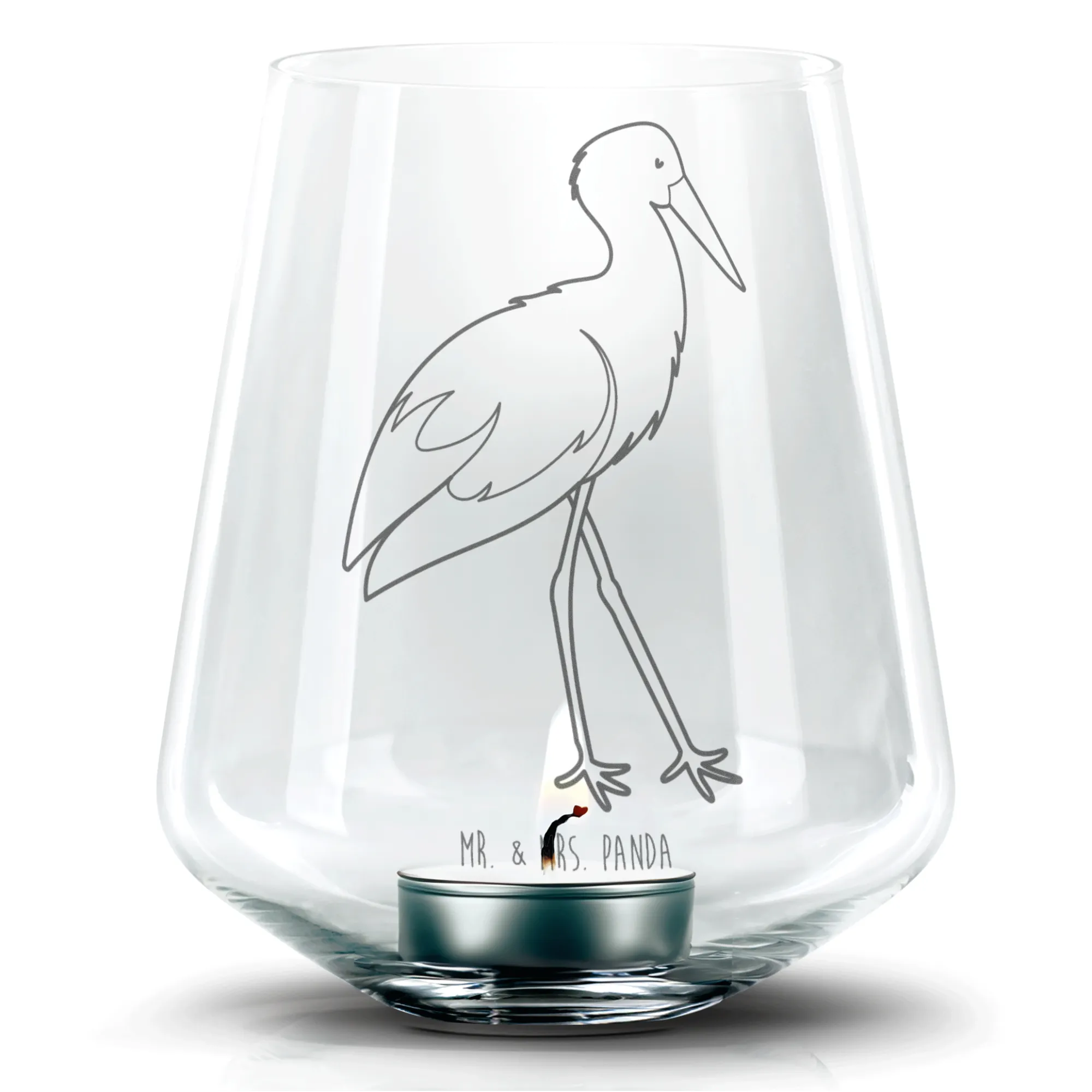 Zauberhaftes Gravur Windlicht „Storch“ aus der Small World Kollektion von Mr. & Mrs. Panda