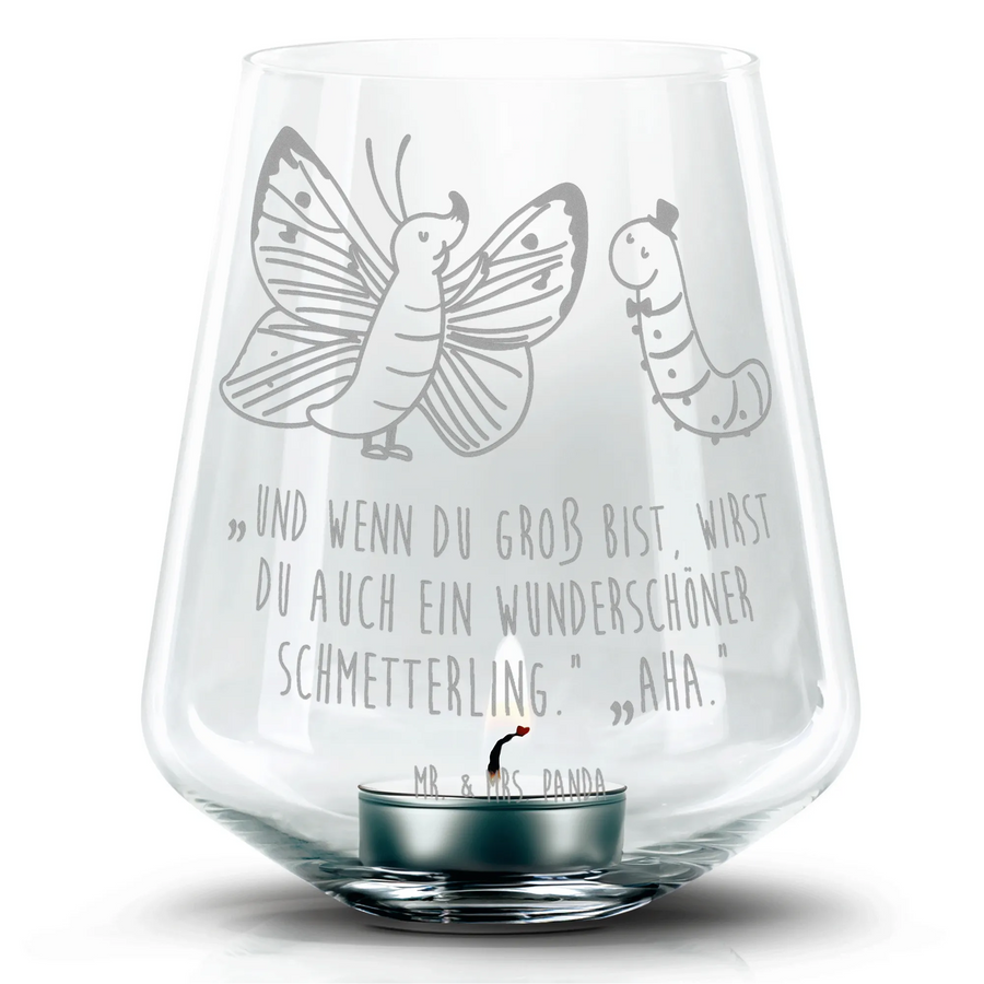 Graviertes Windlicht Raupe Schmetterling - mit Spruch