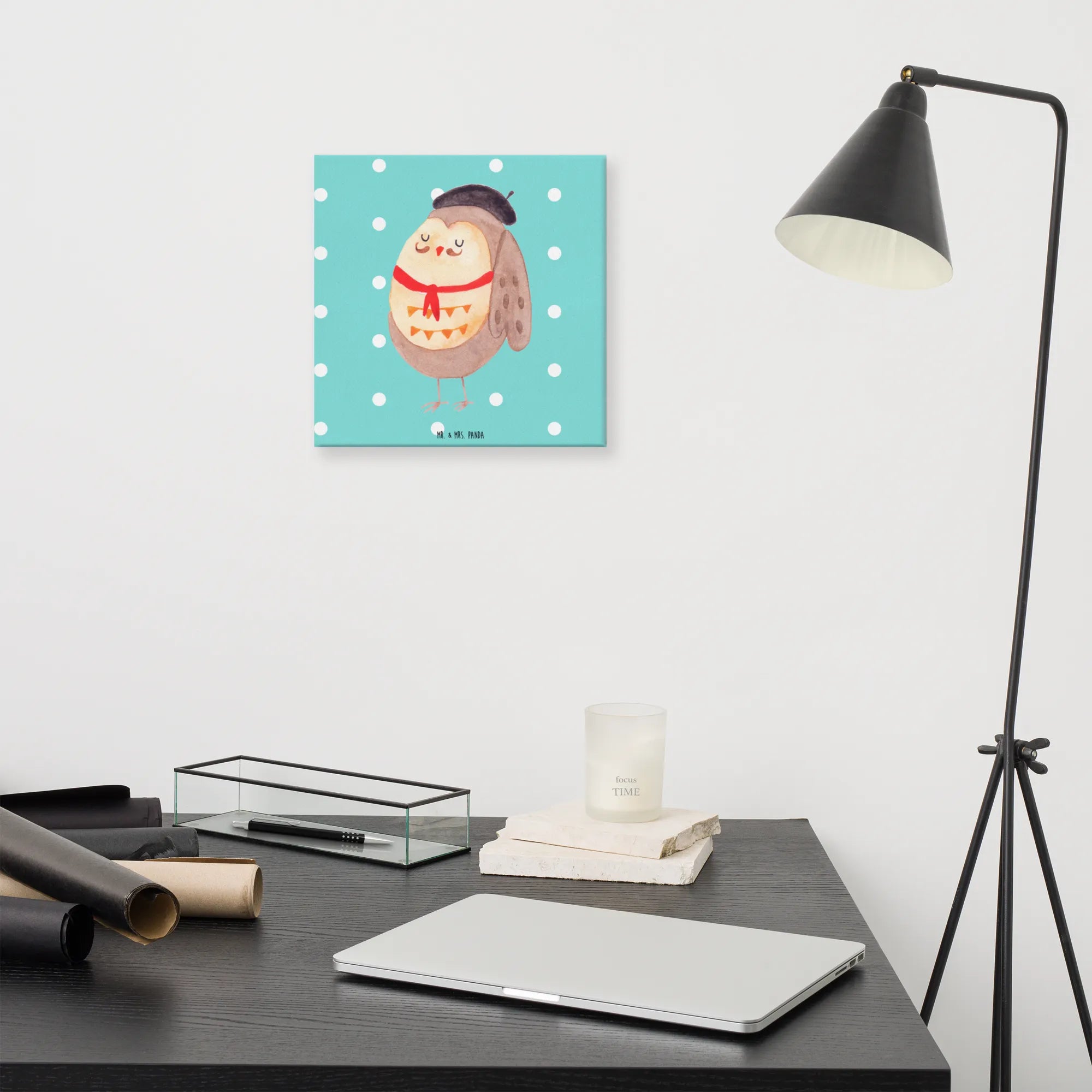 Canvas picture Owl France - 40 x 40 cm - with saying - White