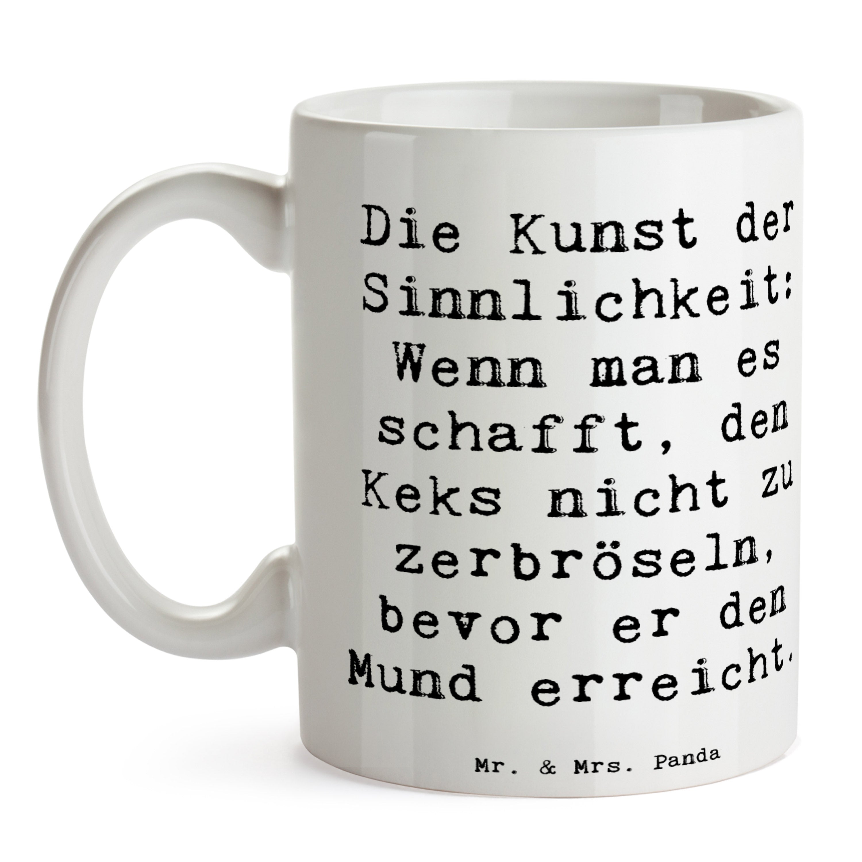 Mug Saying Die Kunst der Sinnlichkeit: Wenn man es schafft, den Keks nicht zu zerbröseln, bevor er den Mund erreicht. - Black