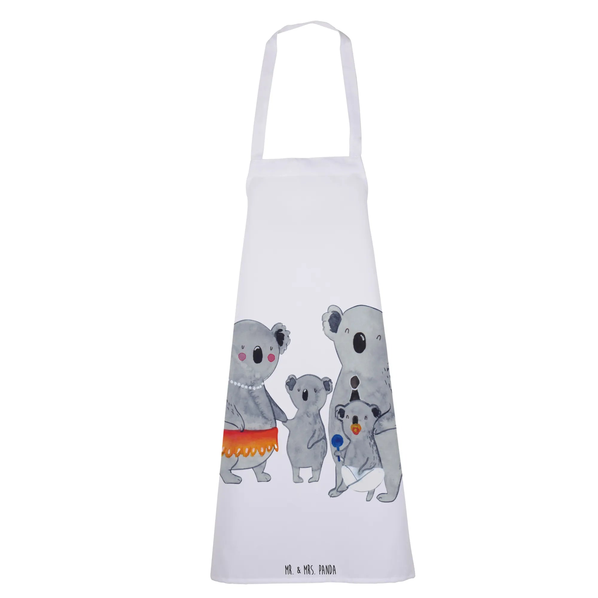 The charming design features a lovely Koala Family motif, capturing the essence of family life beautifully. Picture this: two larger koalas dressed up with a pearl necklace and a party hat, standing proudly alongside two smaller, playful koalas. One of the little ones is sporting a bib, while the other holds a toy, all depicted with bright smiles and twinkling eyes. This heartwarming illustration makes the Koala Family apron a wonderful addition to any kitchen and will surely become a beloved favorite for moms, dads, and kids alike.