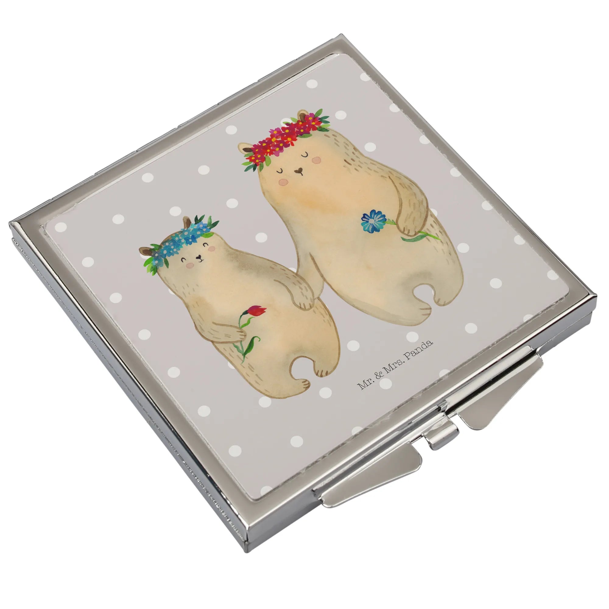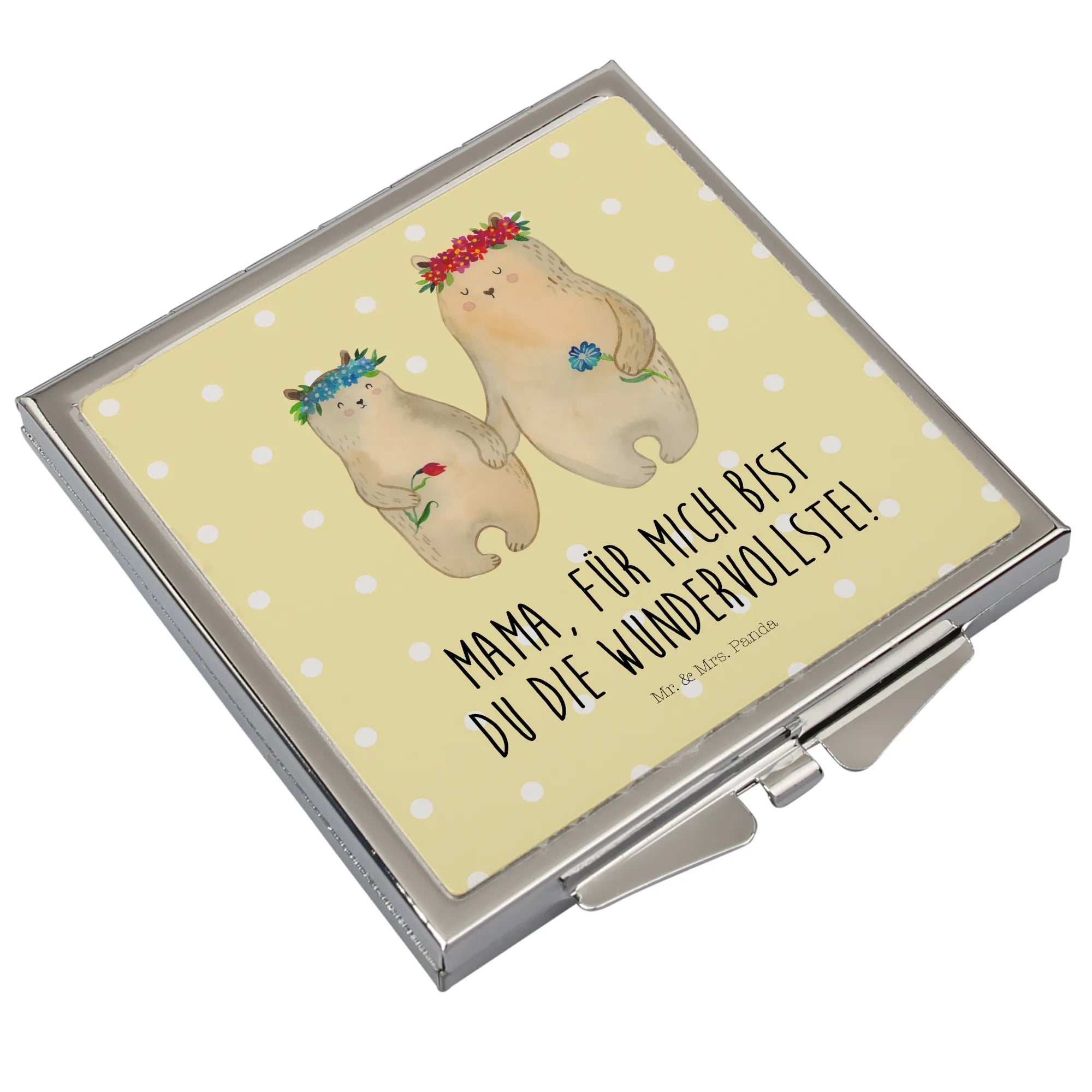 Capture the essence of lovely moments with the Handbag Mirror from Mr. & Mrs. Panda! With its square design, measuring 60 mm x 60 mm x 8 mm, this beautiful accessory features enchanting motifs and joyful phrases that brighten your day. Made from durable glass with an aluminum coating, this mirror not only sparkles but also stands the test of time. The chic silver-plated edge adds a touch of elegance, making it a delightful gift for friends or an indulgent treat for yourself. Compact enough to slip easily into any handbag or backpack, it’s perfect for all your touch-up needs while on-the-go. Its handy folding mechanism ensures that it stays protected, preventing scratches and marks. Whether you’re gearing up for a night out or just need to check your look during the day, this Handbag Mirror is a must-have. Wipe it gently with a damp cloth for easy maintenance and keep the charm alive day after day.