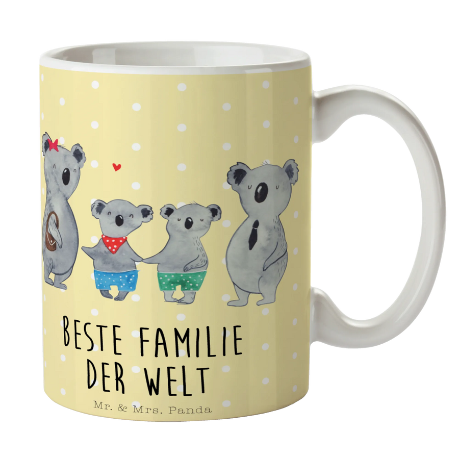 Mug Koala family with two kids - with a saying - Pastel Yellow