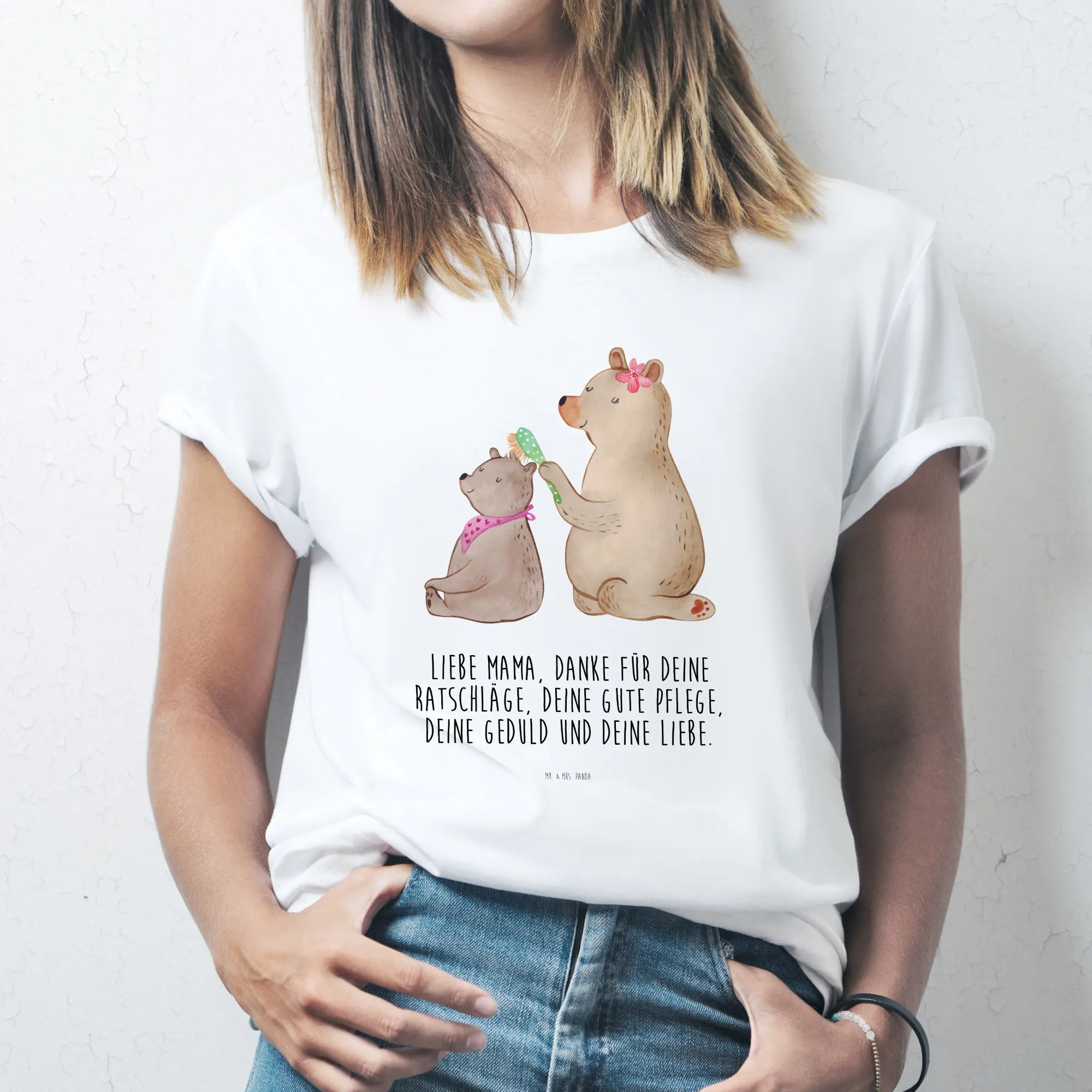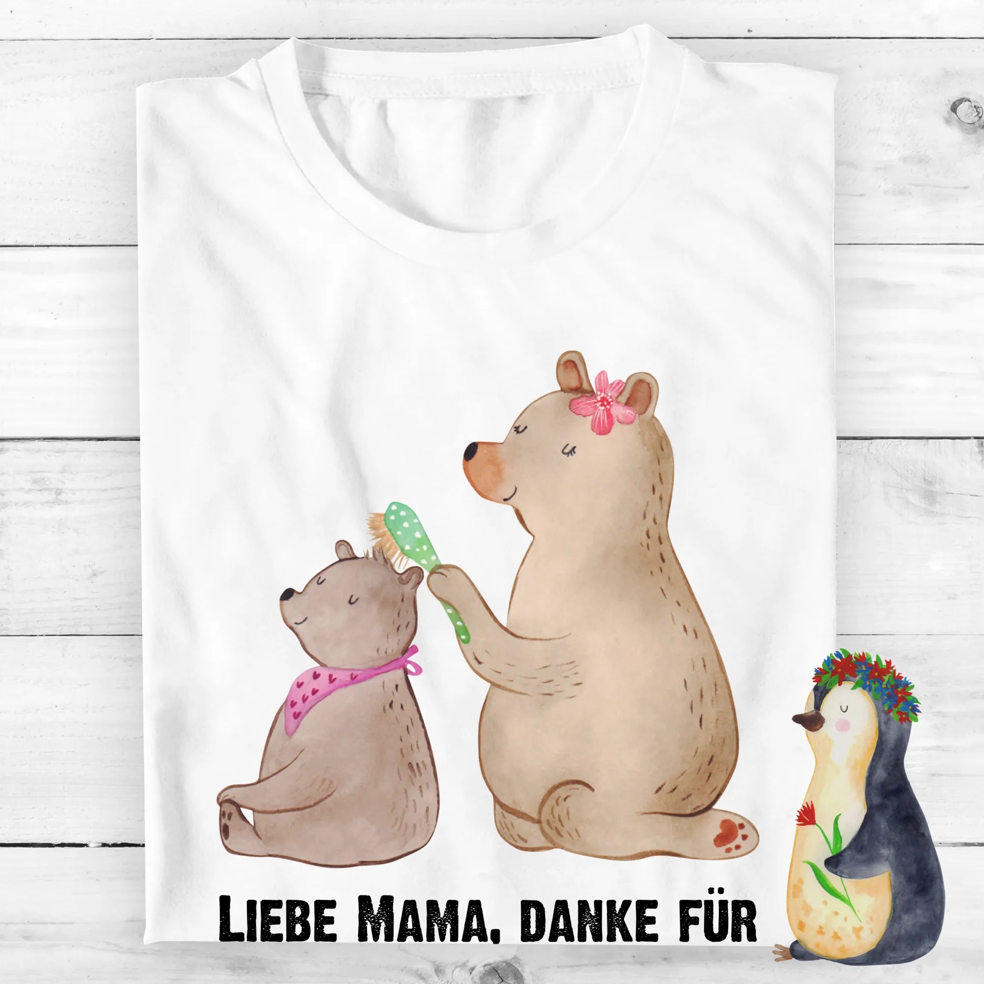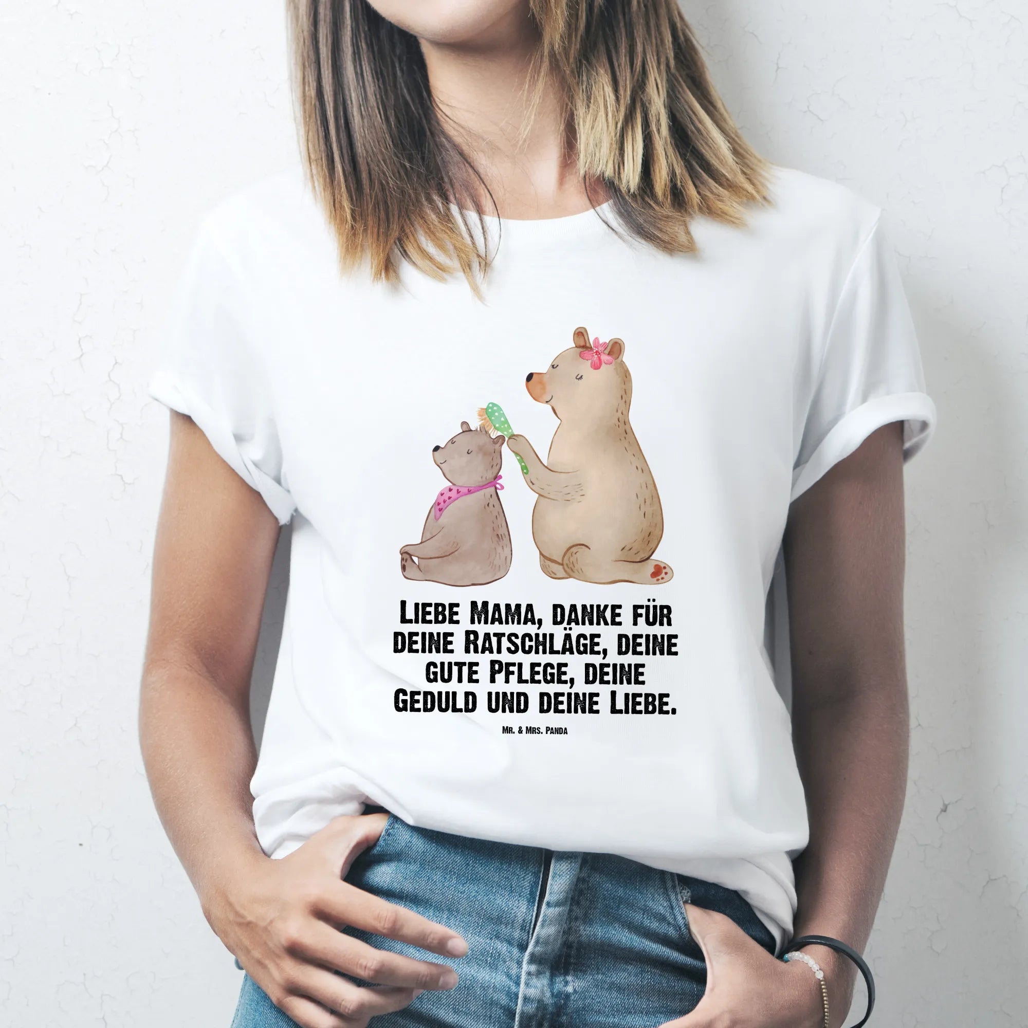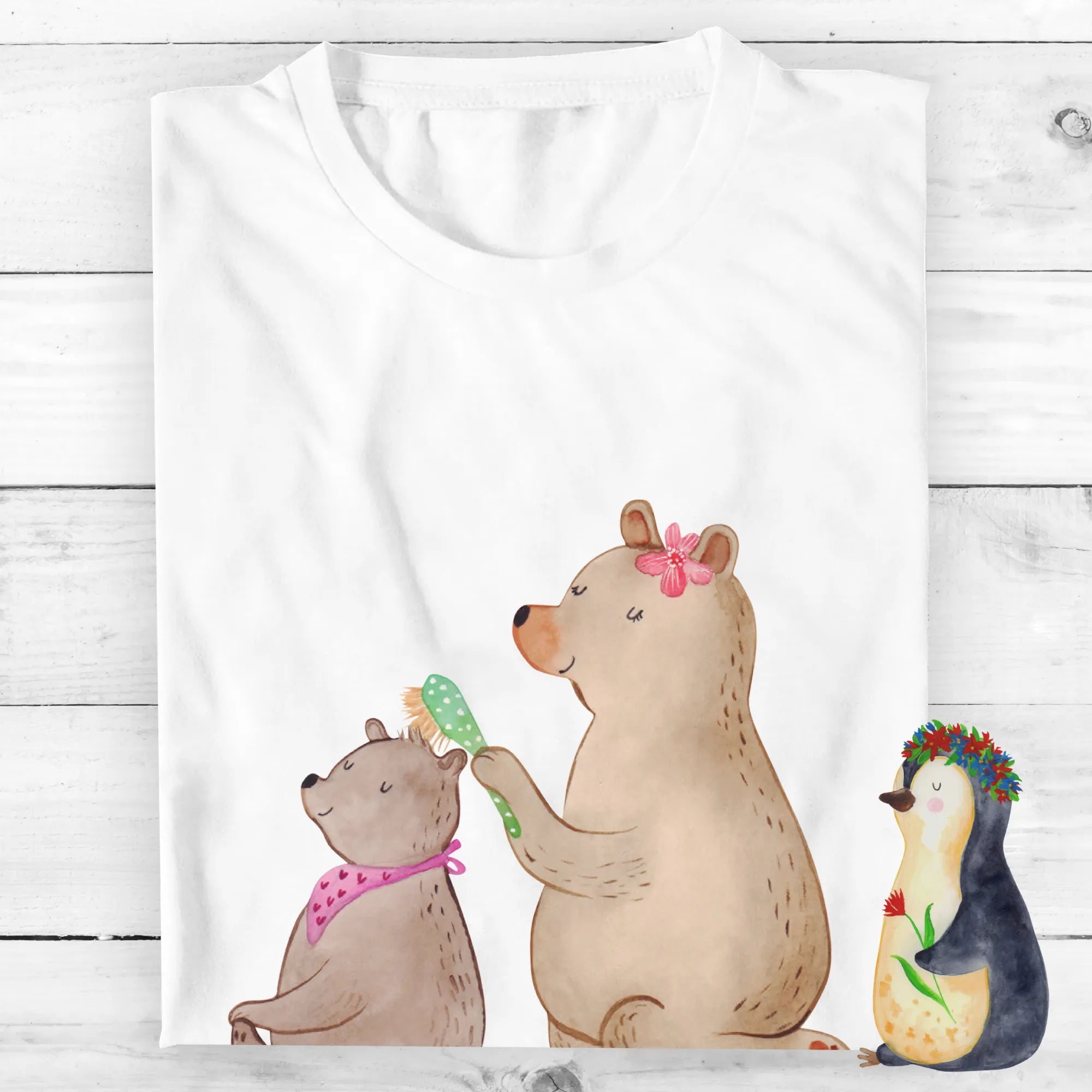 Ein Geschenk, das von Herzen kommt: Dieses Mr. & Mrs. Panda Damen T-Shirt Größe L trägt das zarte Motiv „Bär mit Kind“ aus unserer Familien-Kollektion. Ein großer, fürsorglicher Bär mit blumengeschmückter Haarspange kämmt liebevoll das Fell eines kleineren Bären – ein Bild voller Wärme und Geborgenheit. Ergänzt wird das Motiv durch den herzlichen Spruch: „Liebe Mama, danke für deine Ratschläge, deine gute Pflege, deine Geduld und deine Liebe.“