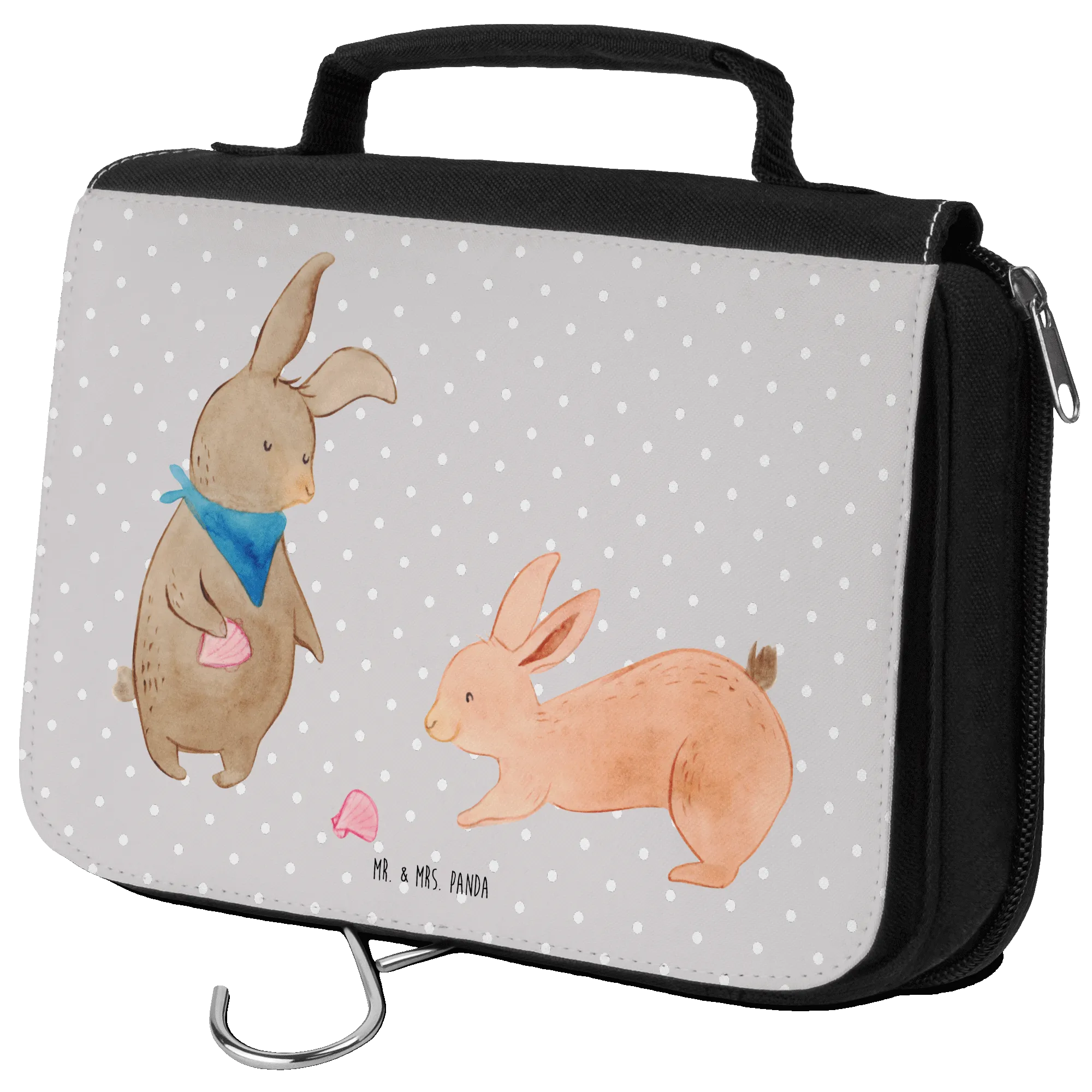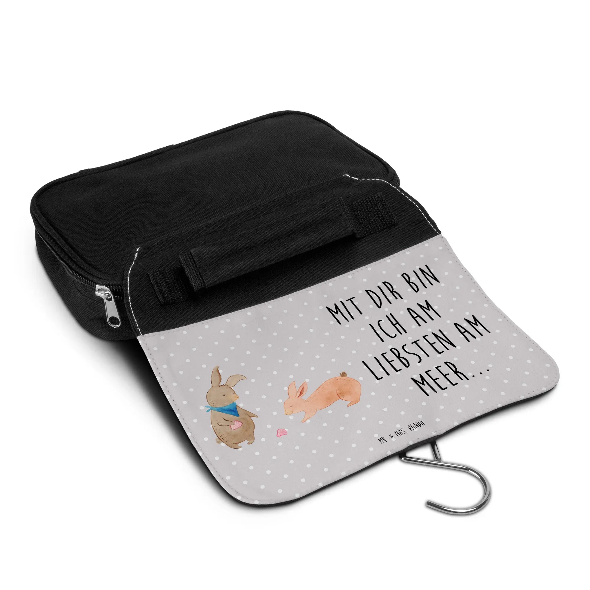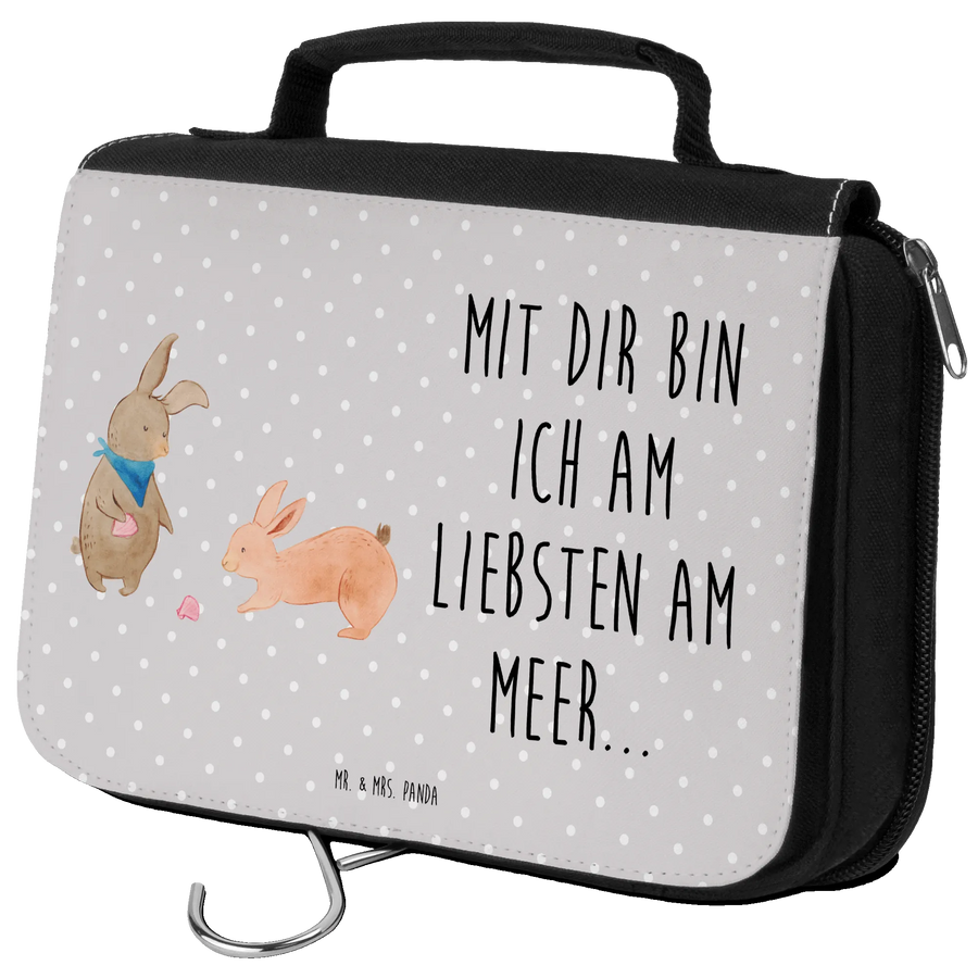 Wash bag Bunnies with seashell - with a saying - Pastel Gray