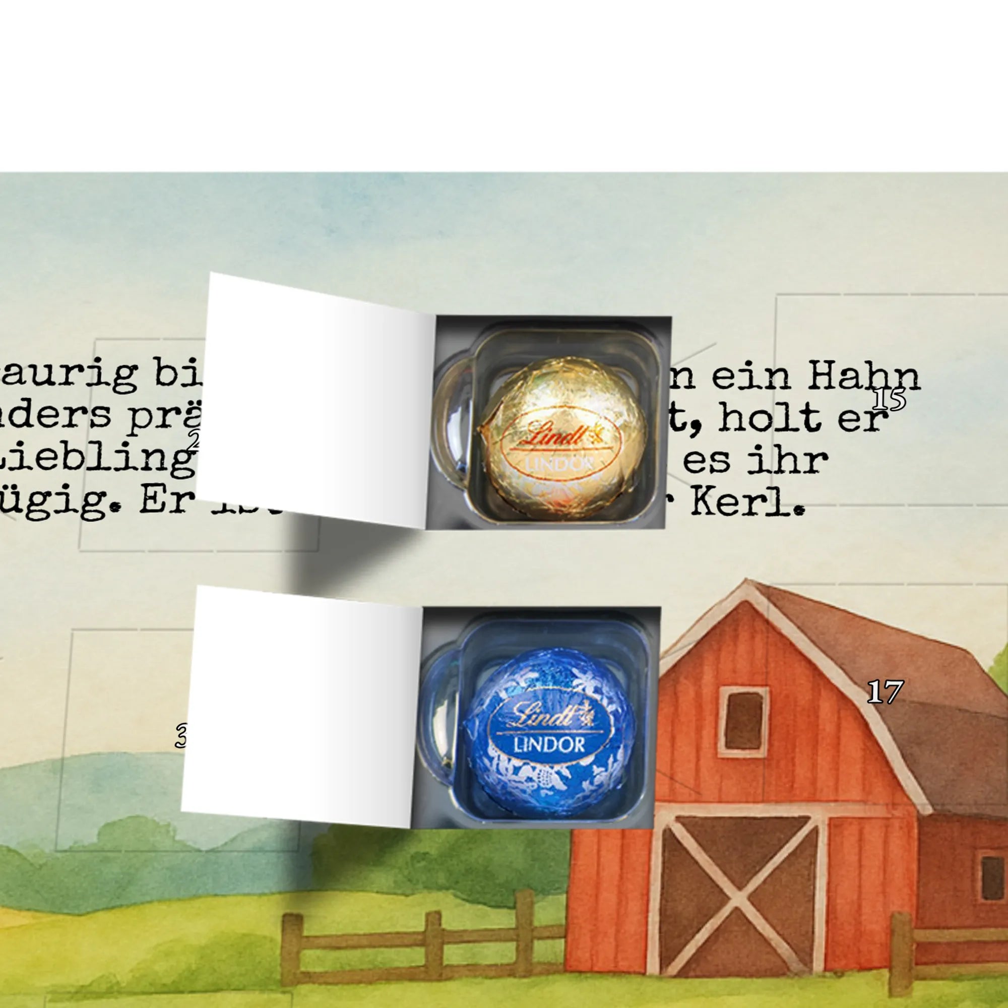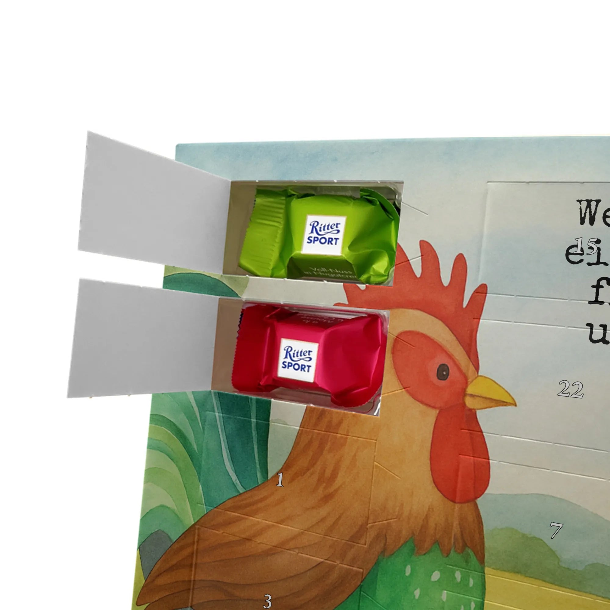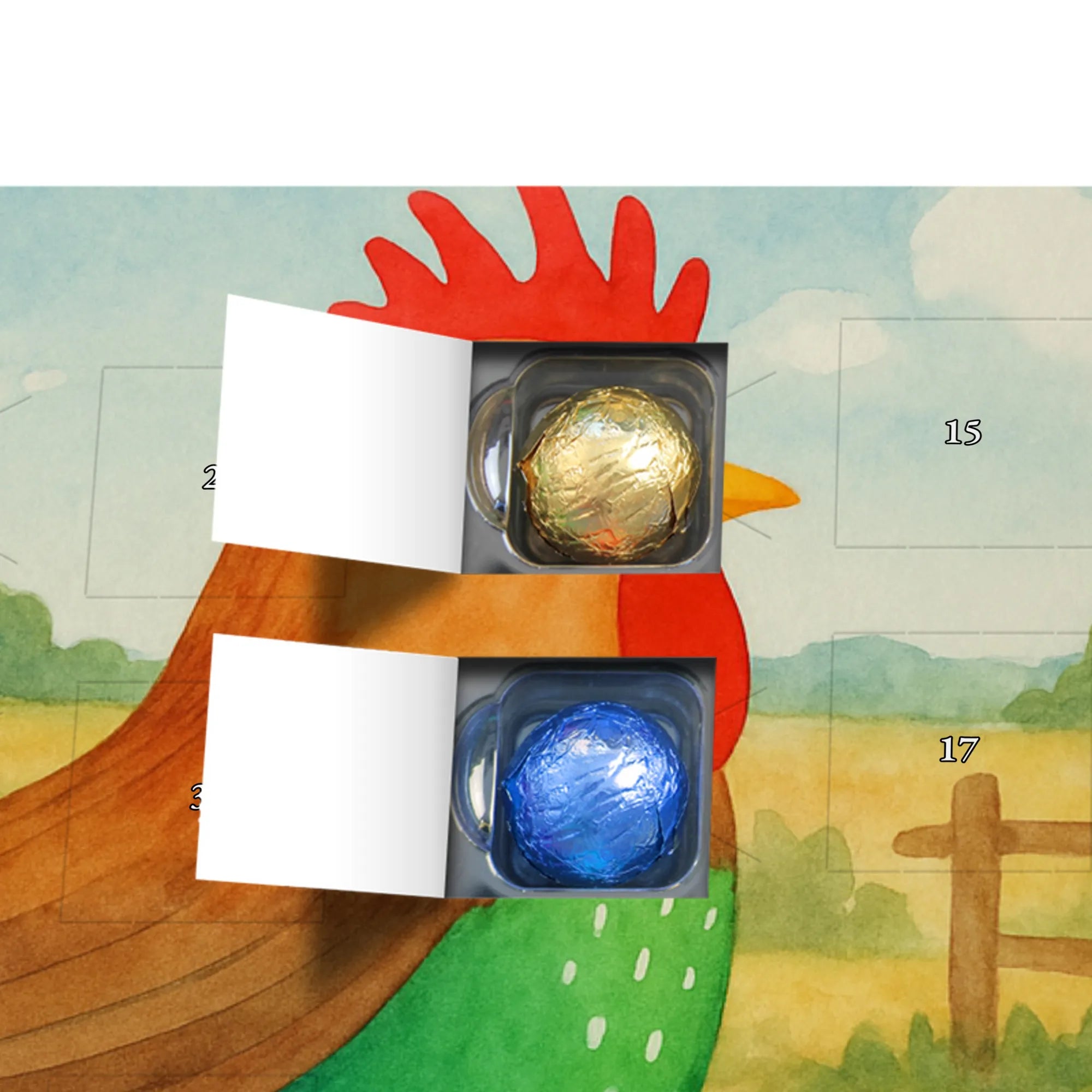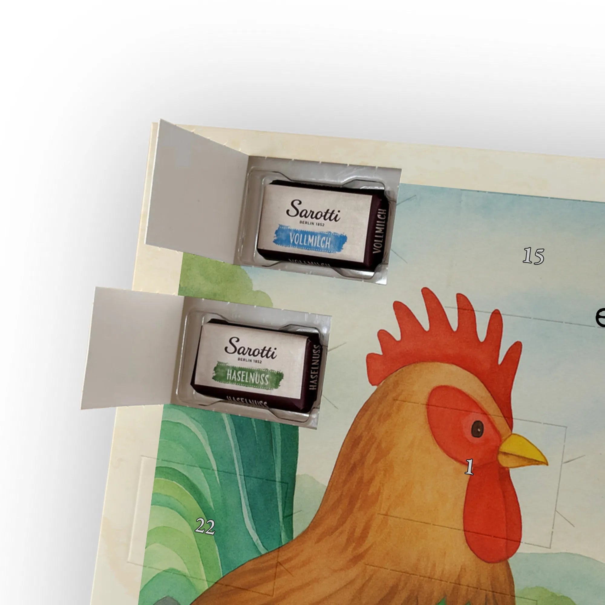Chocolate advent calendar Faucet grain Design farm, farm animals, animals, nature, eggs, hen, corn, cock