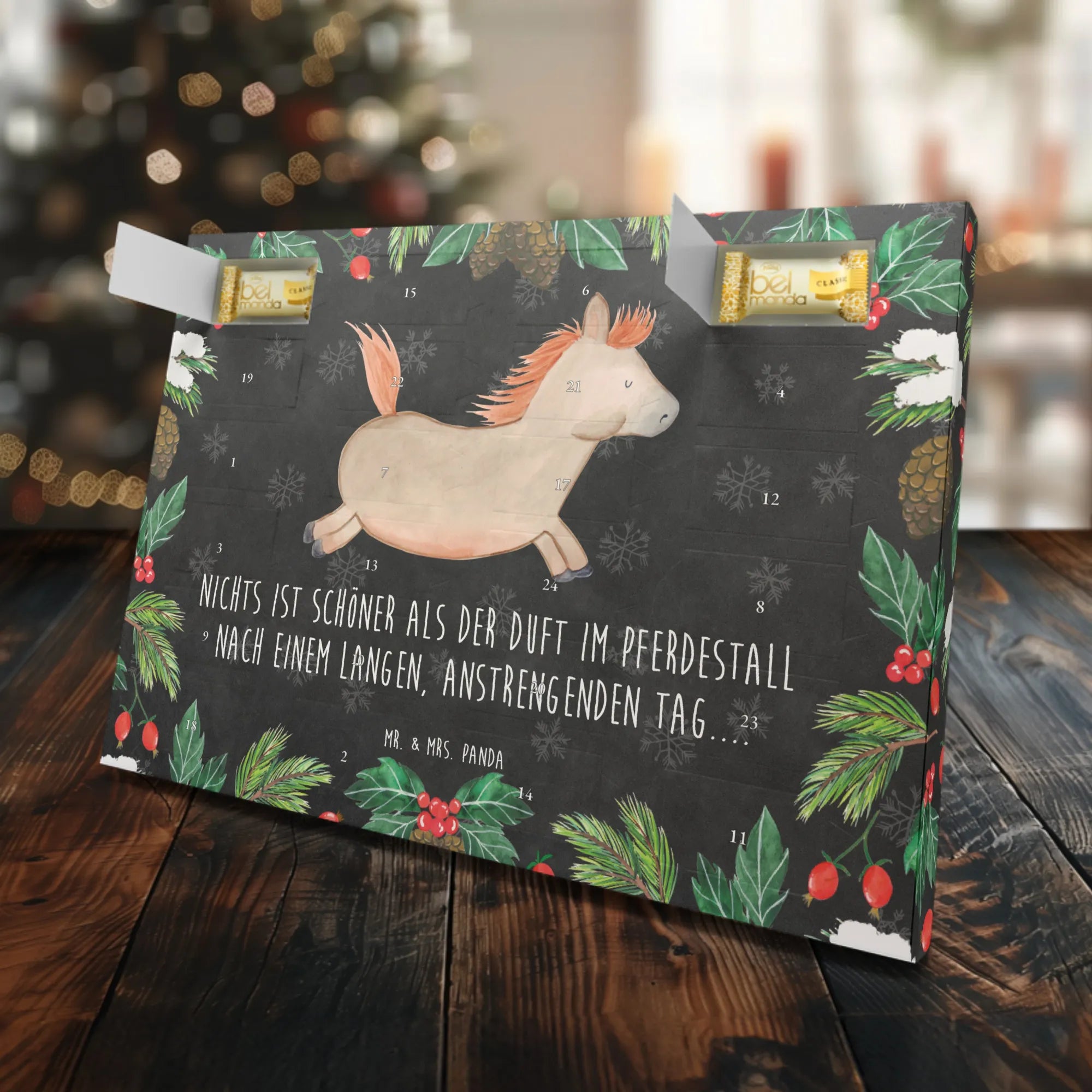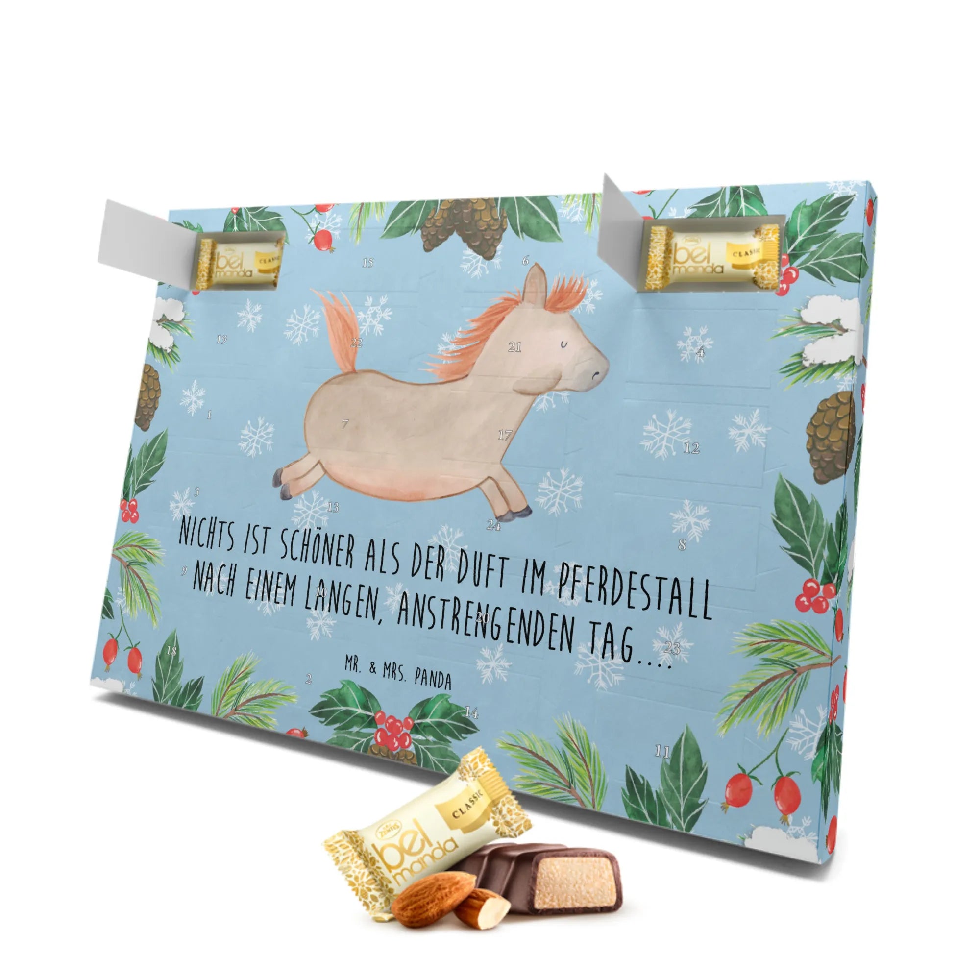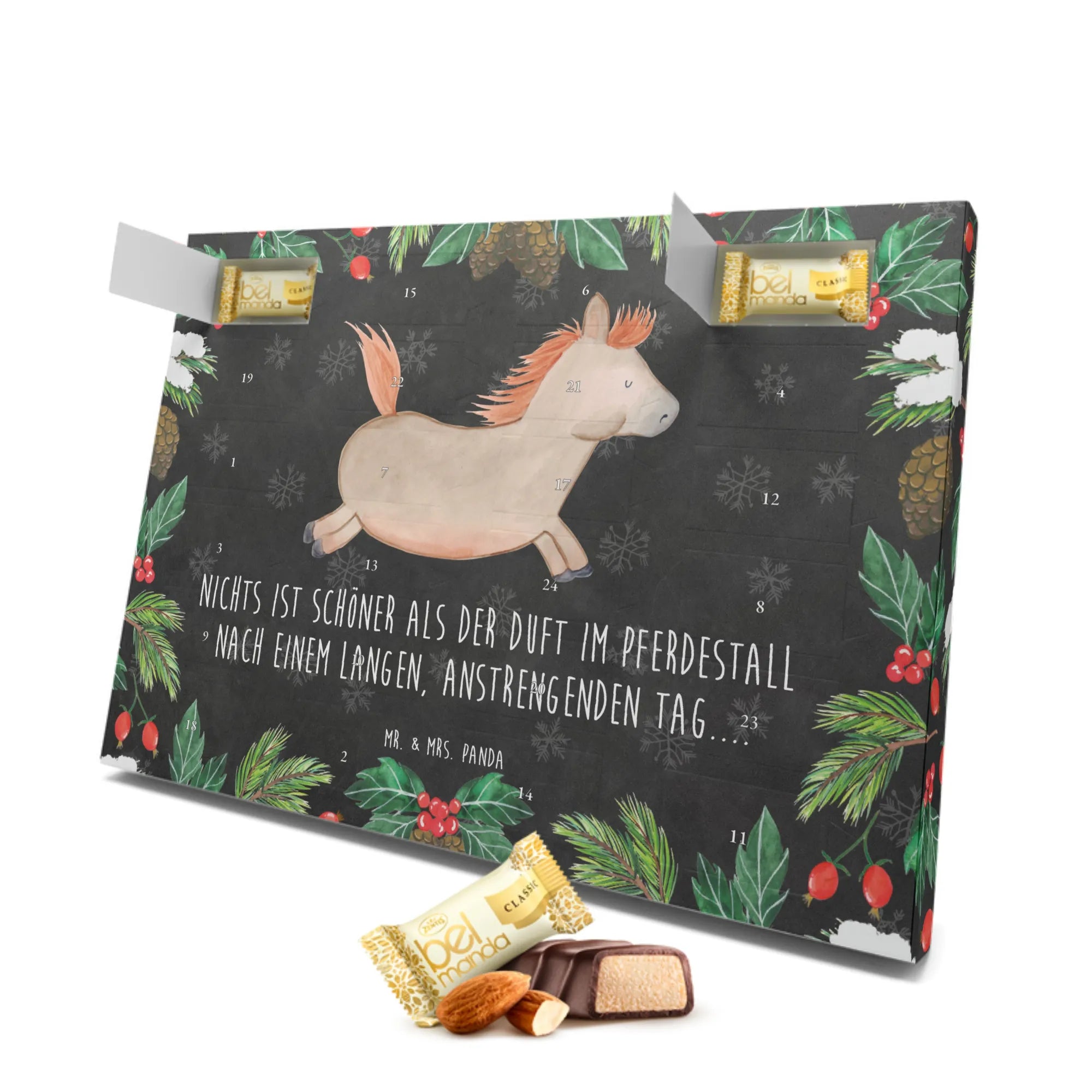 Perfekt für die kalte Jahreszeit, zaubert dieser Adventskalender ein Lächeln ins Gesicht deiner Liebsten und lässt insbesondere die Herzen der Pferdeliebhaber höher schlagen. Er ist nicht nur ein Genuss, sondern auch ein Erlebnis, das mit jedem Türchen wächst.