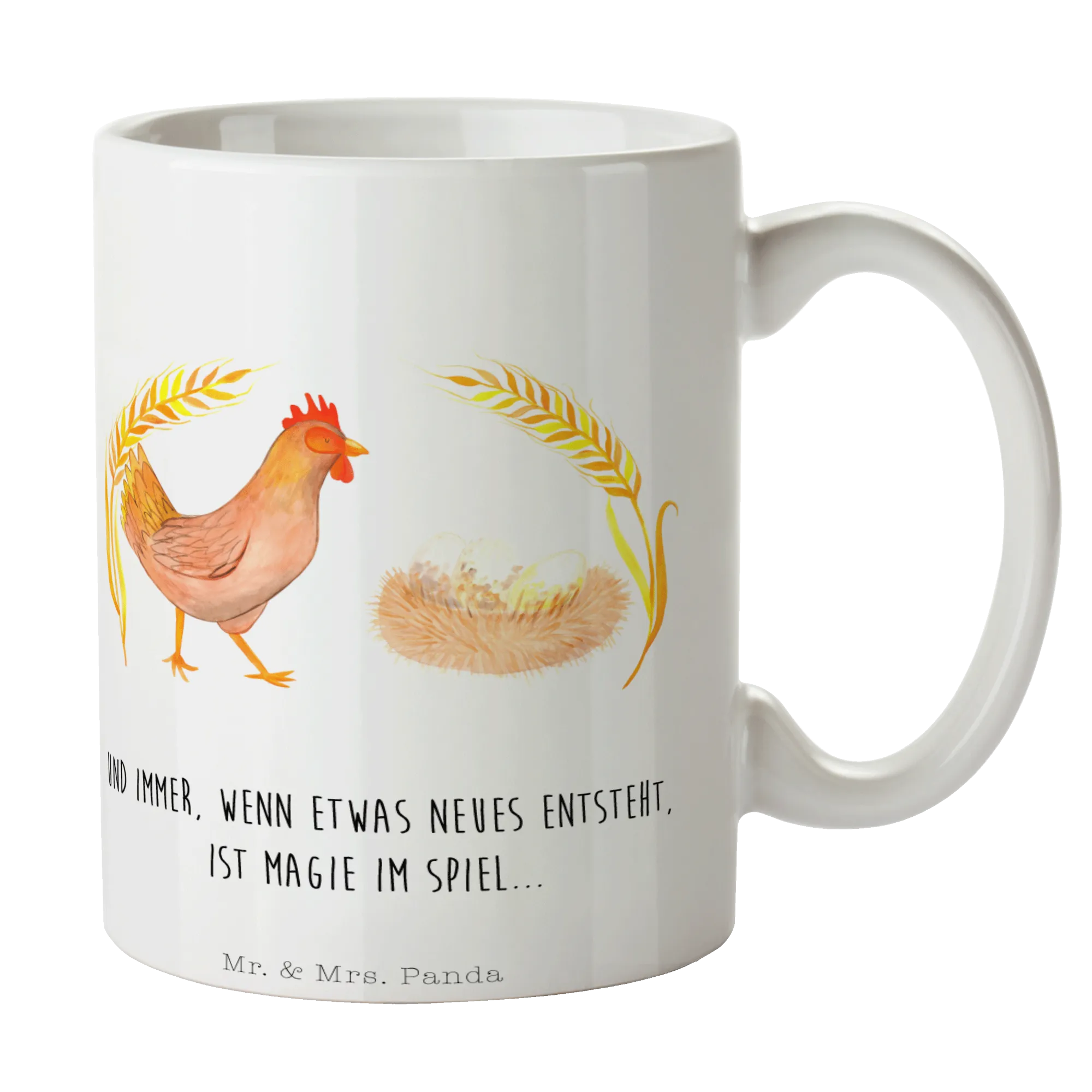Our Farm Collection celebrates the wonderful life on a farm, featuring a host of lovable animal designs. Each piece is lovingly hand-drawn by Mrs. Panda, ensuring that every mug is unique and filled with character. This Chicken Proud Mug, similar to our roaring roosters and charming hens, adds a delightful touch to any kitchen or office space, while also serving as a motivational reminder that 'magic is at play whenever something new is born.'