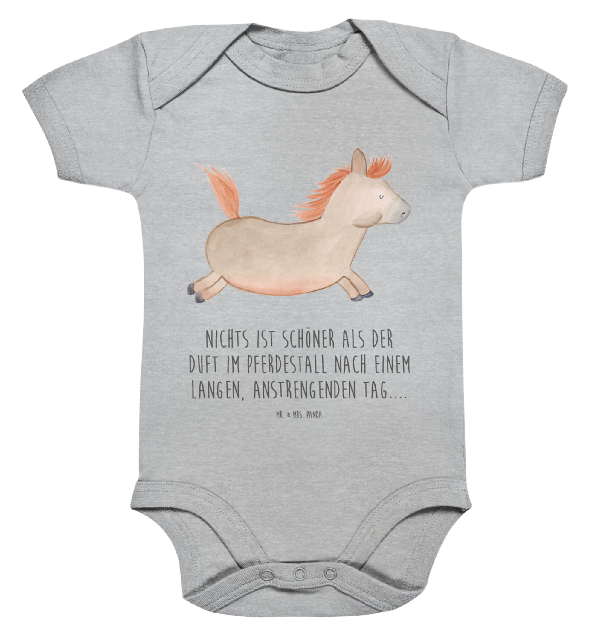 Looking for a perfect gift for the little horse lover in your life? Look no further! Our Organic Baby Body featuring the delightful motif of a jumping horse is an excellent choice for parents who want to introduce the joys of the farm to their babies.