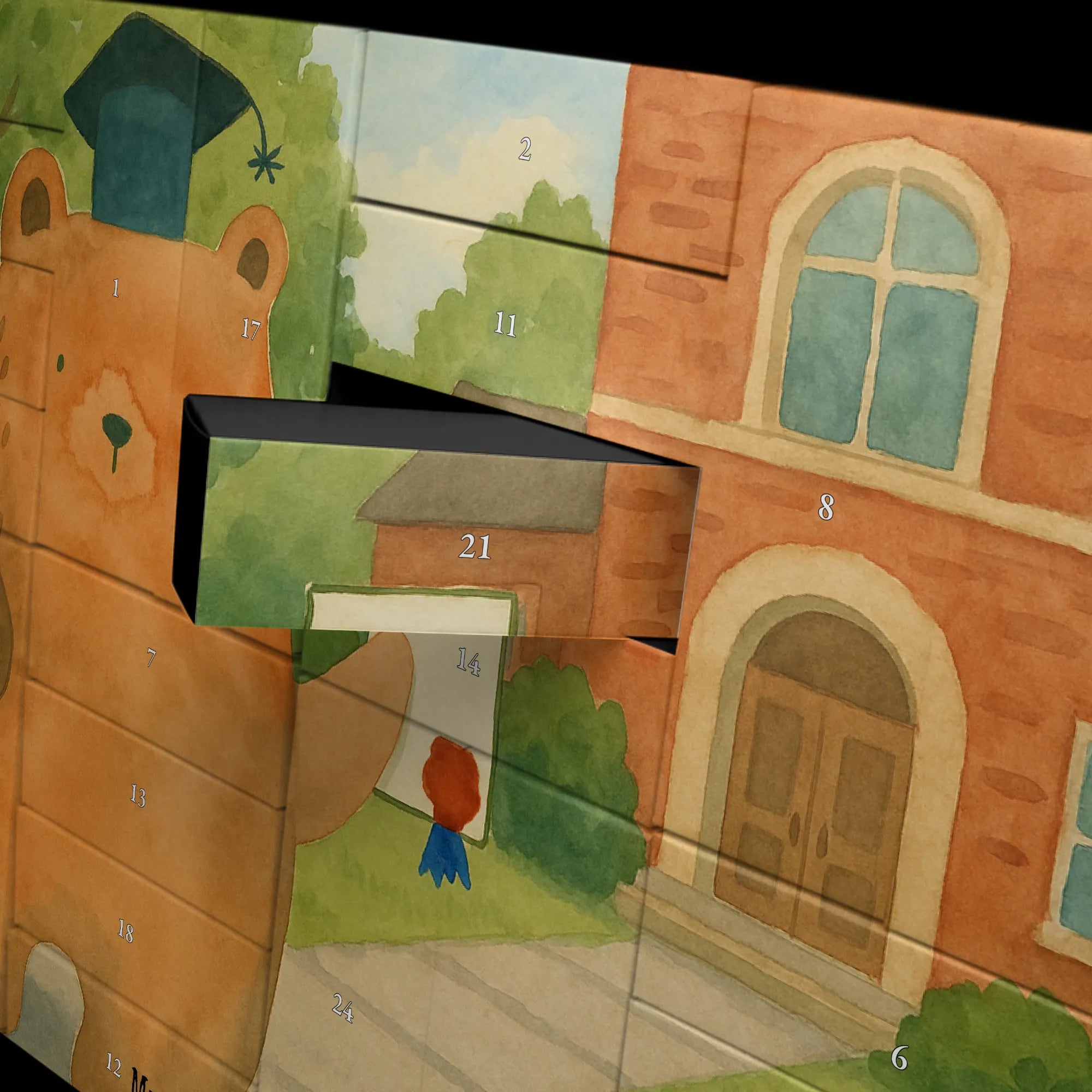 Warum er so besonders ist: Die Bär-Kollektion steht für liebevolle, handgezeichnete Motive von Mrs. Panda. Der Prüfungsbär bringt Wärme, Trost und Freude – perfekt für alle, die Bären und Teddybären lieben. Ob als Geschenk zum Abitur, als Abschlussgeschenk oder einfach als kleine Aufmerksamkeit nach bestandener Prüfung: Dieser Adventskalender ist immer eine gute Idee.