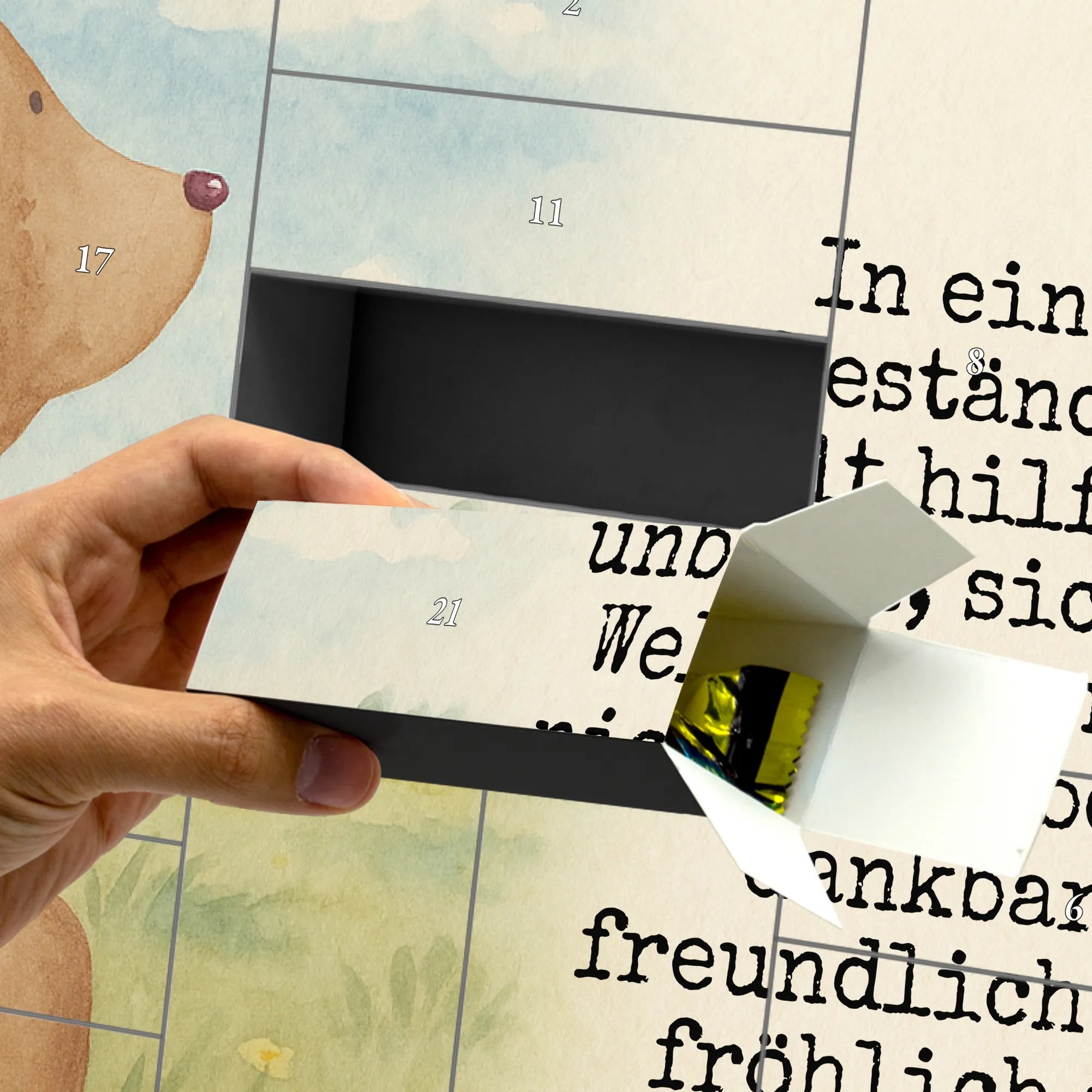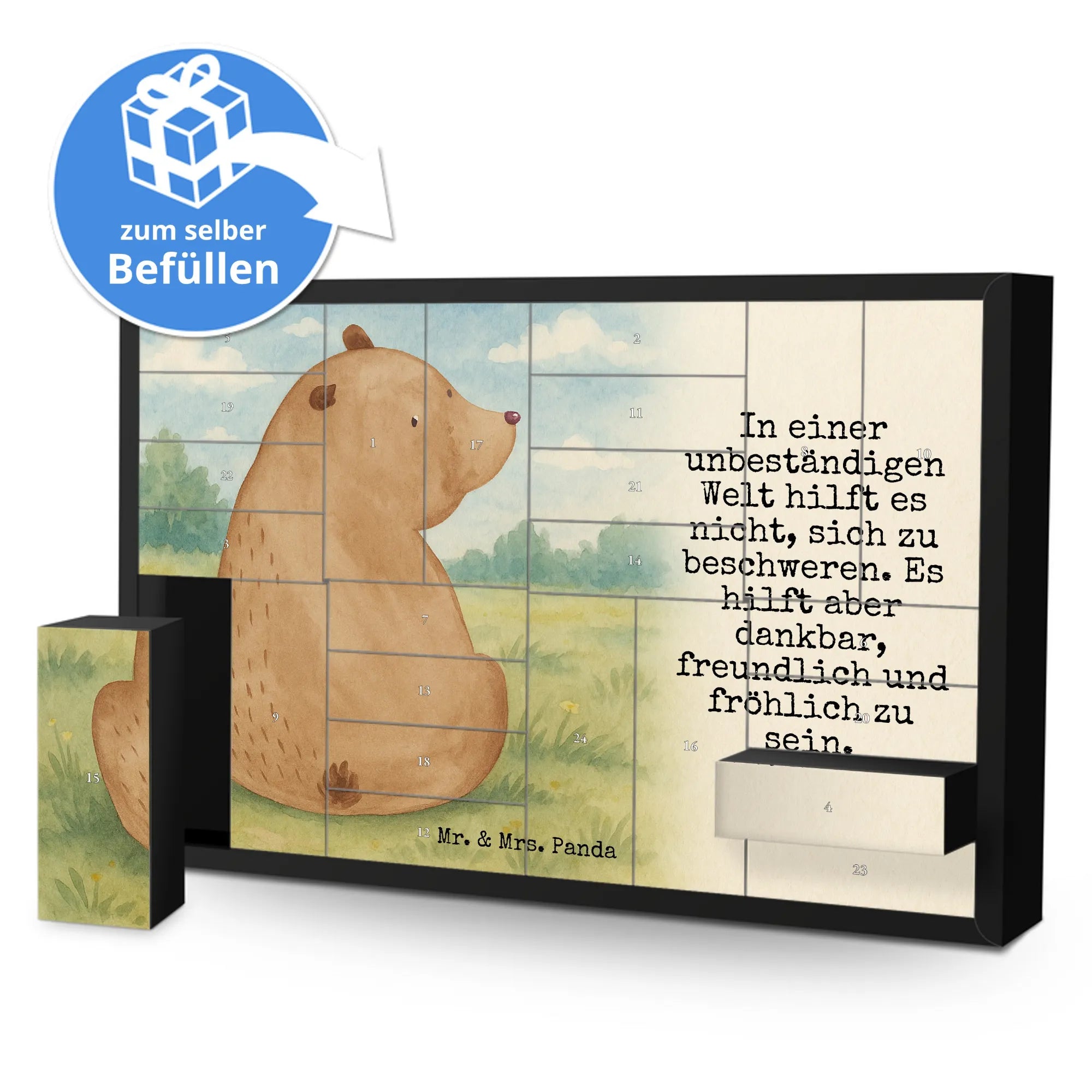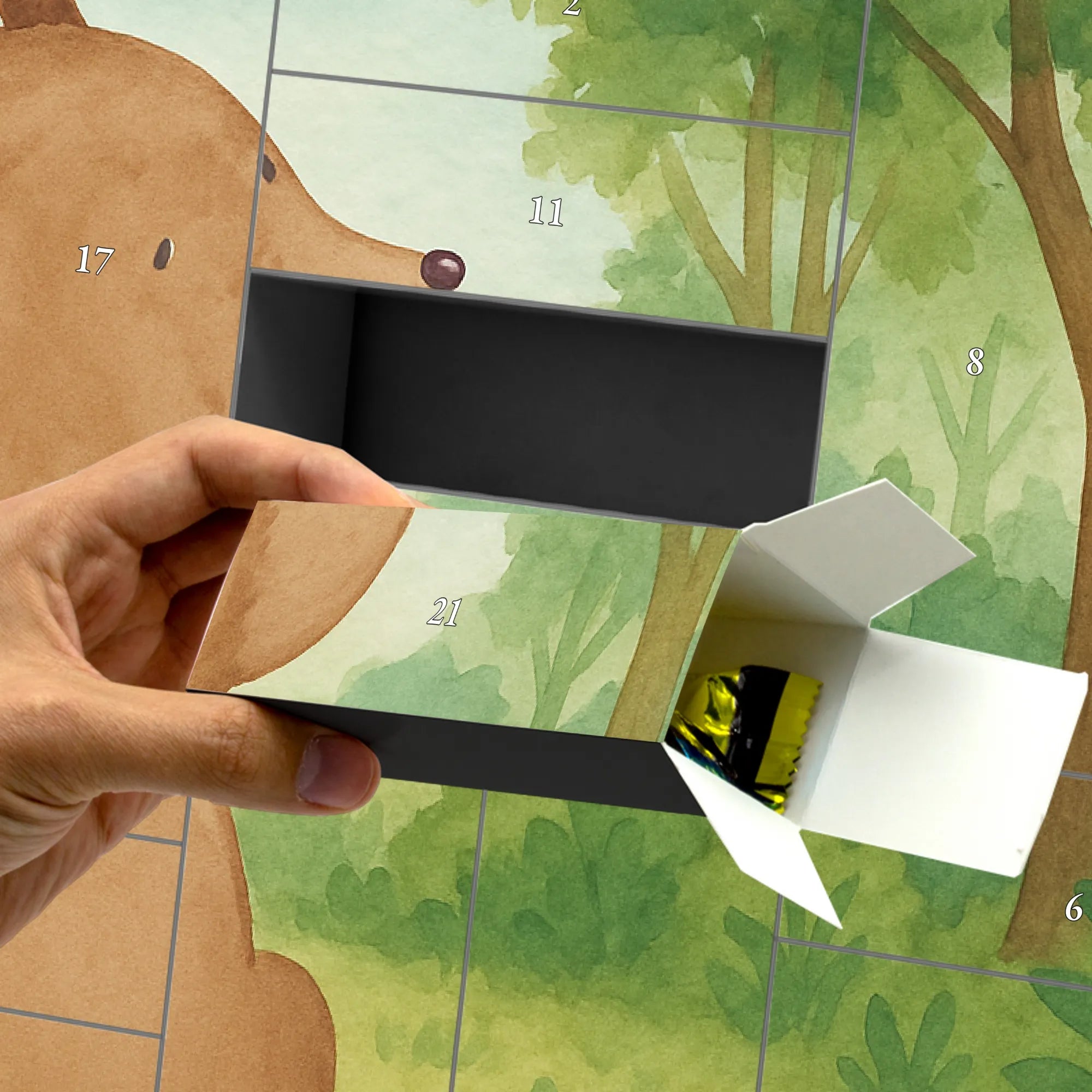 Der befüllbare Adventskalender "Bär Schulterblick" aus der Bär-Kollektion von Mr. & Mrs. Panda bringt Wärme, Niedlichkeit und handgemachte Illustrationsliebe in deinen Advent. Ein entzückender Bär schaut dir zärtlich über die Schulter – ein Motiv, das Kinderherzen und Bärenfans gleichermaßen erfreut.