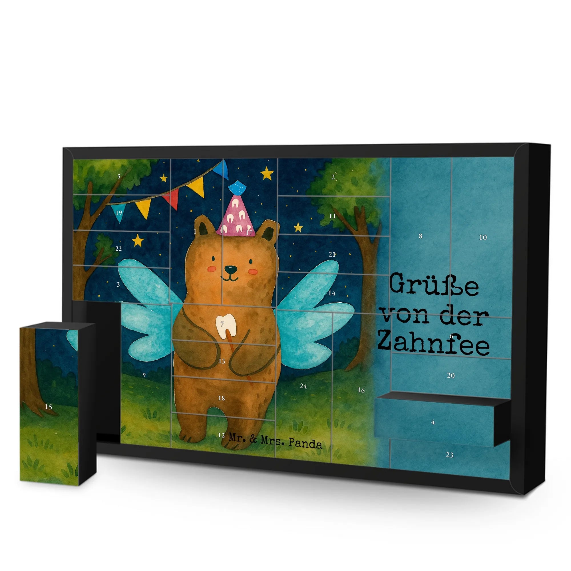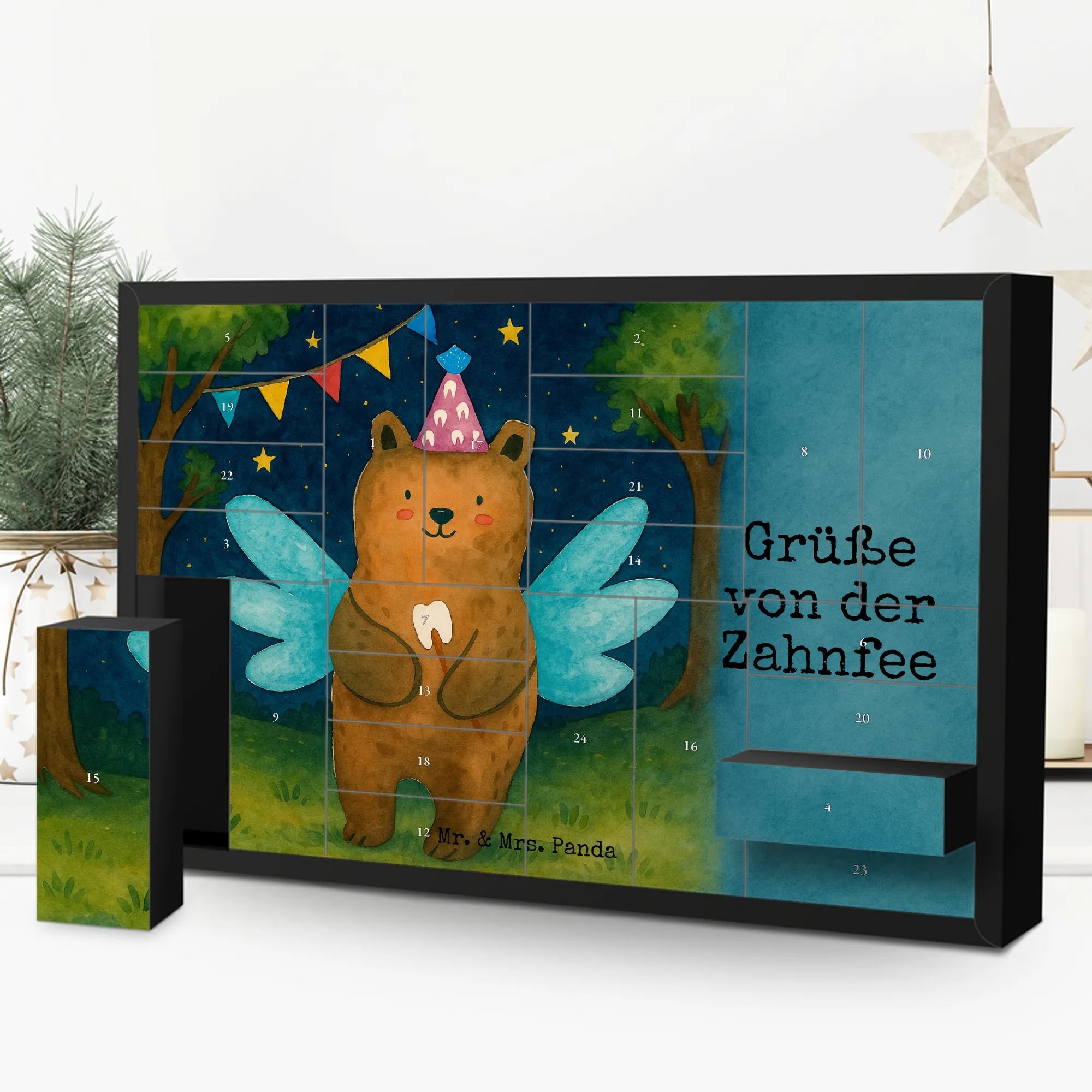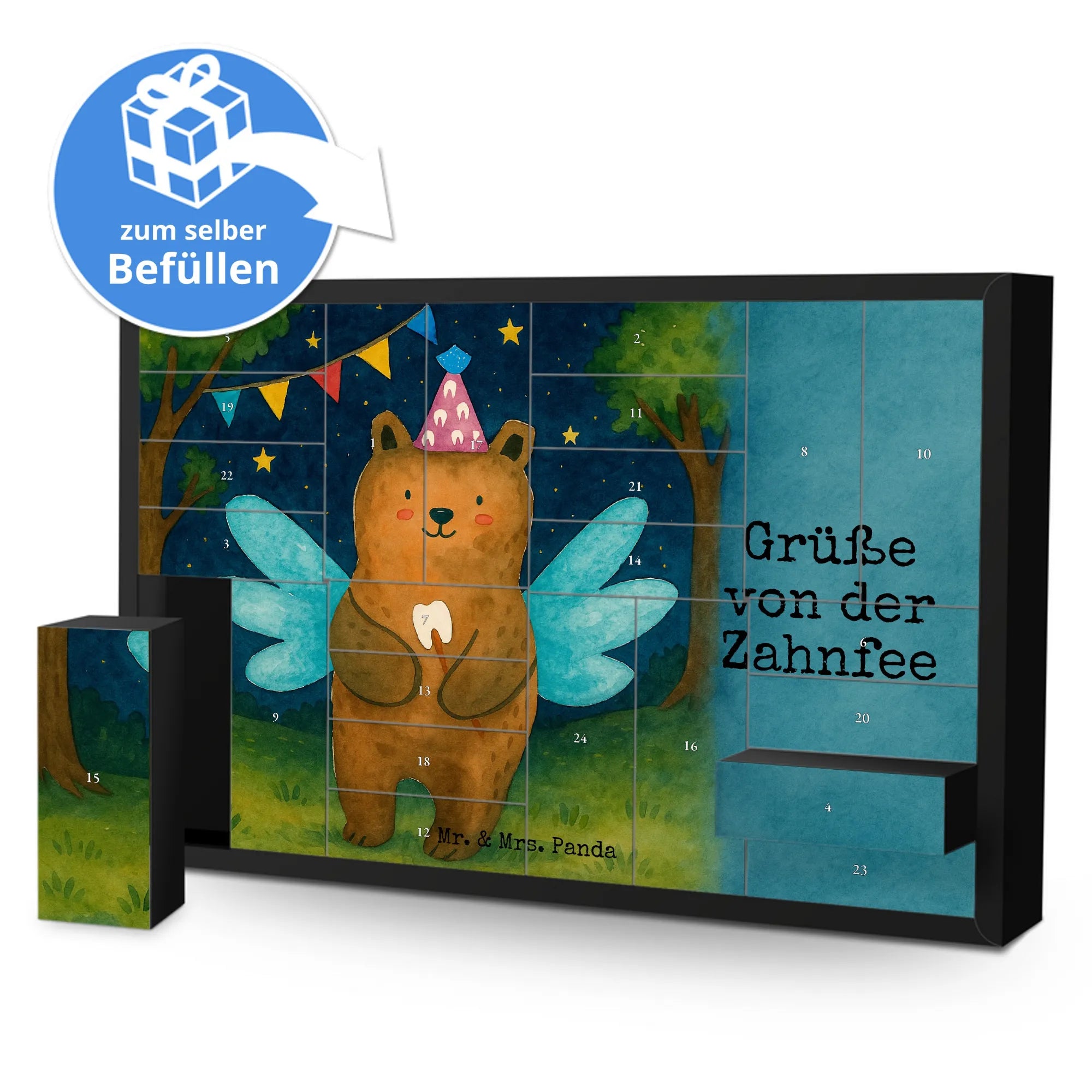 Entdecke den befüllbaren Adventskalender „Zahnfee Bär“ von Mr. & Mrs. Panda – ein liebevolles Geschenk für Kinder, die gerade ihren ersten Milchzahn verlieren oder von der Zahnfee träumen. Die süße Illustration von Mrs. Panda zeigt einen kleinen Teddybär mit Feenhütchen, Flügeln und Zauberstab. Der Schriftzug „Grüße von der Zahnfee“ macht den Kalender besonders charmant.