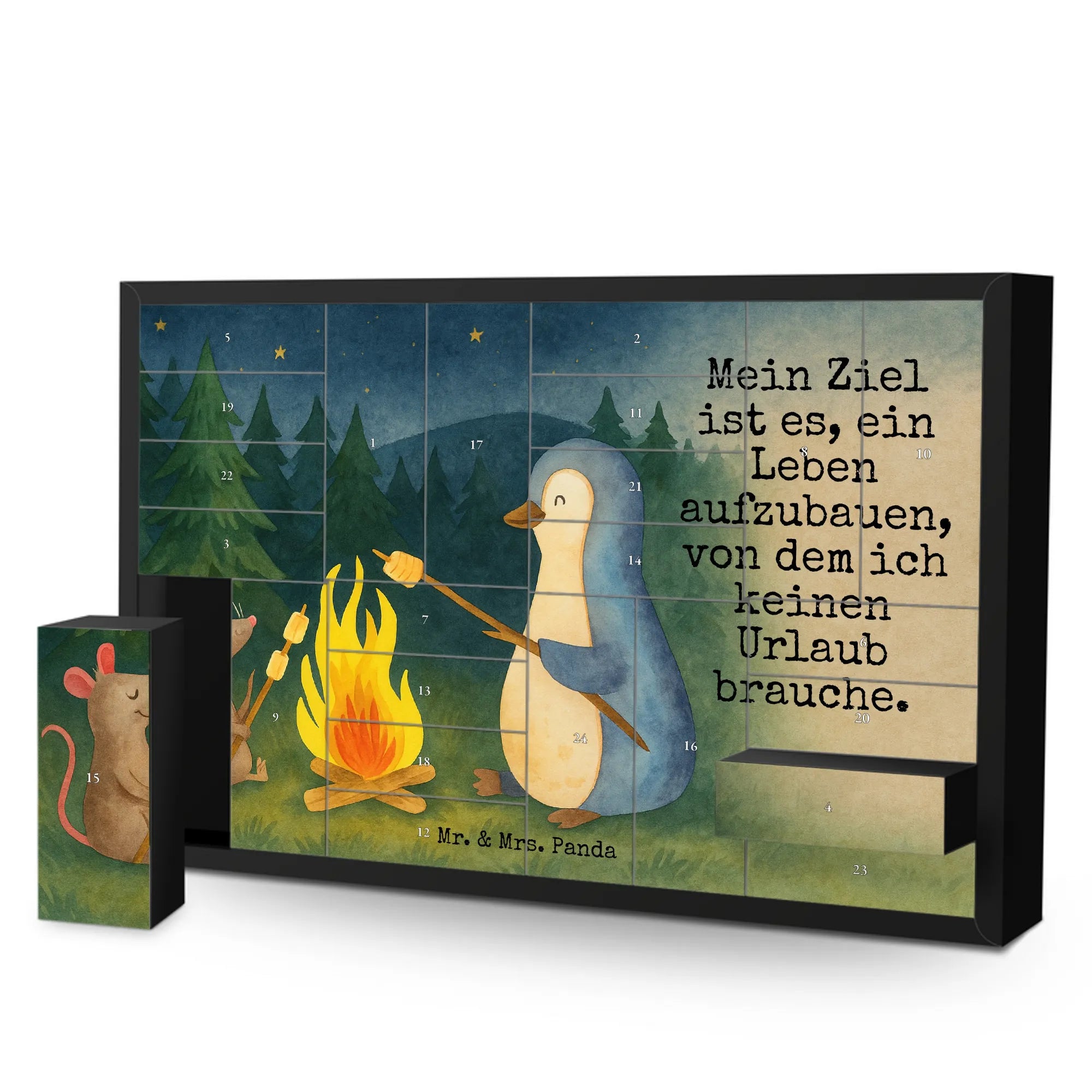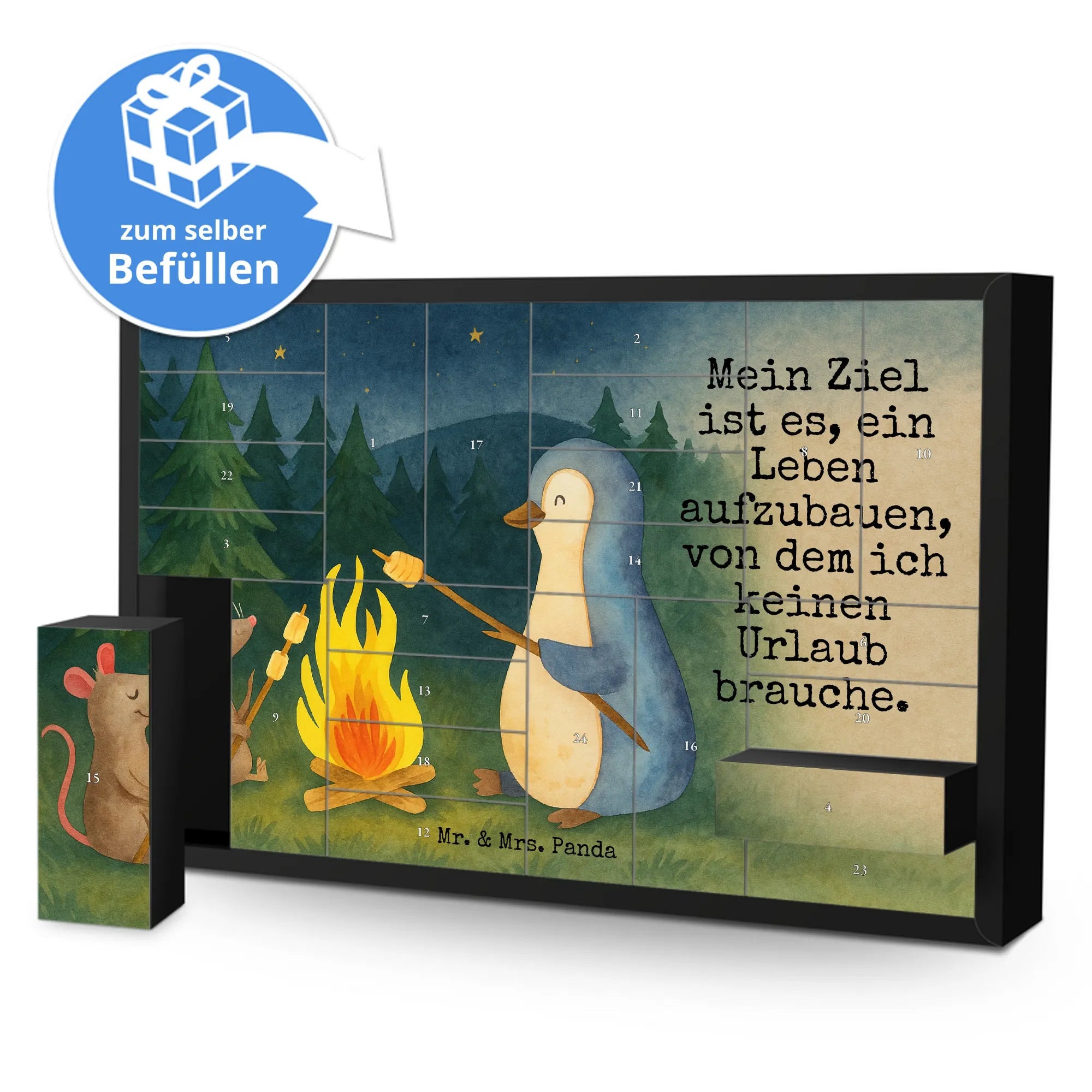 Fillable advent calendar Penguin campfire Design - with saying