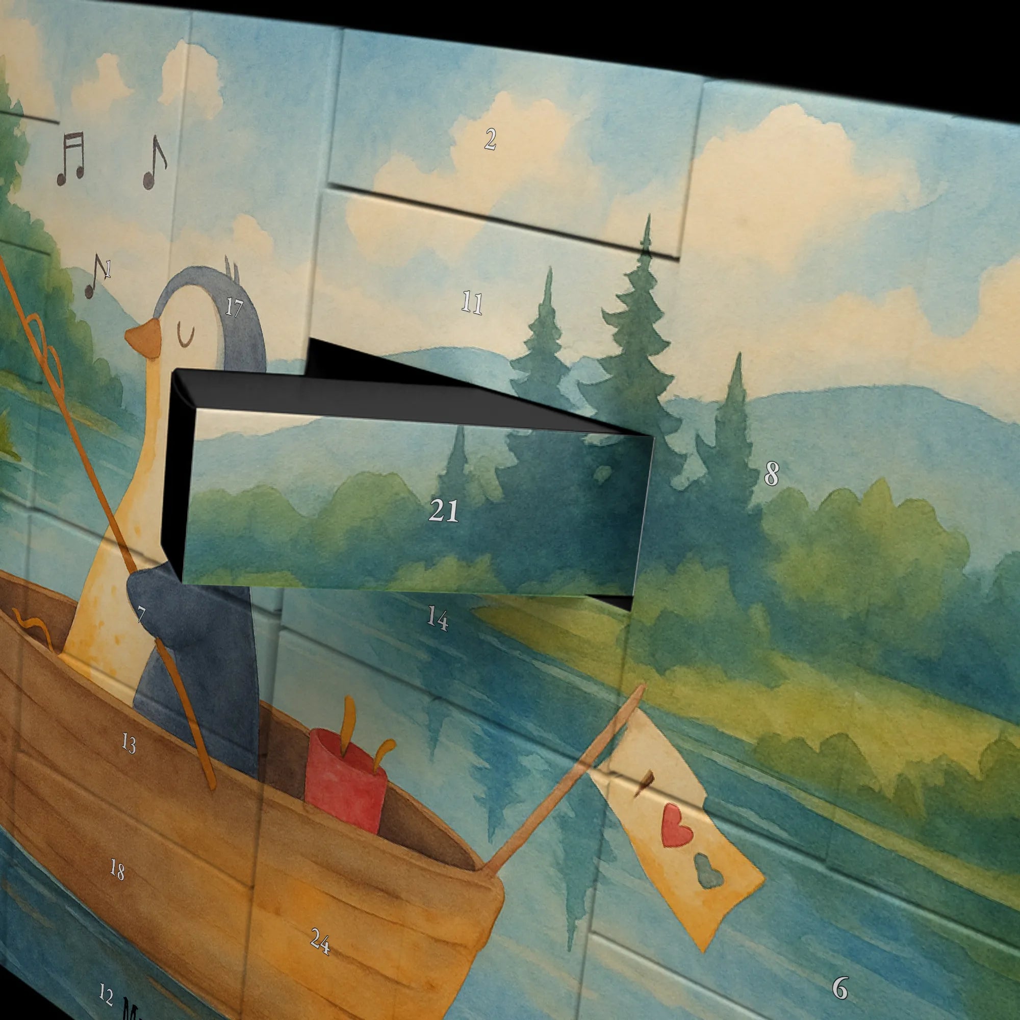 Fillable advent calendar Penguin fishing boat Design - with saying