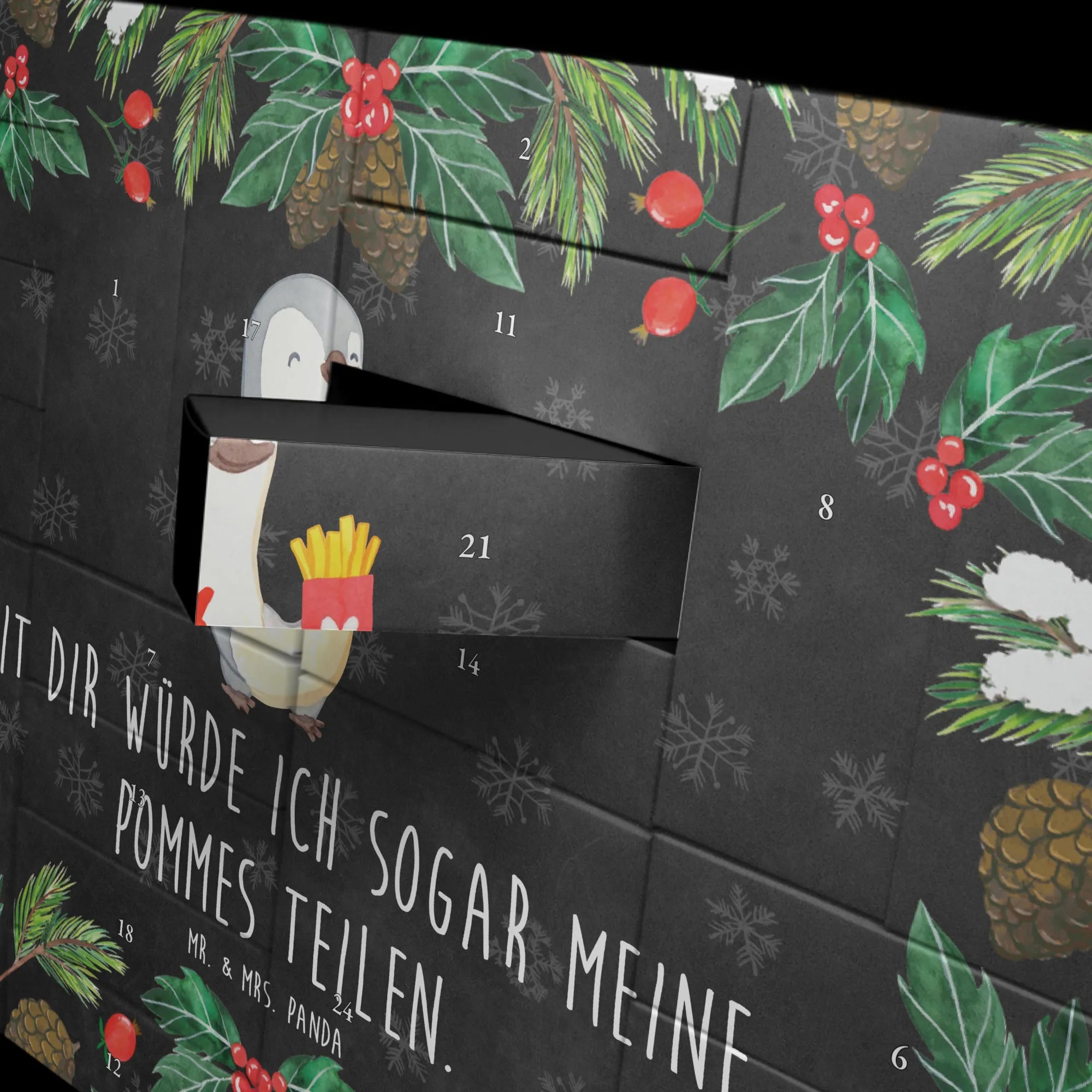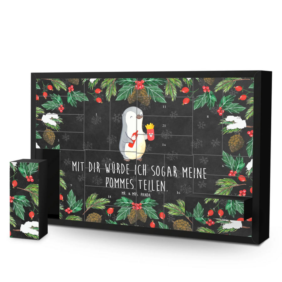 Fillable advent calendar penguin French fries - Chalkboard