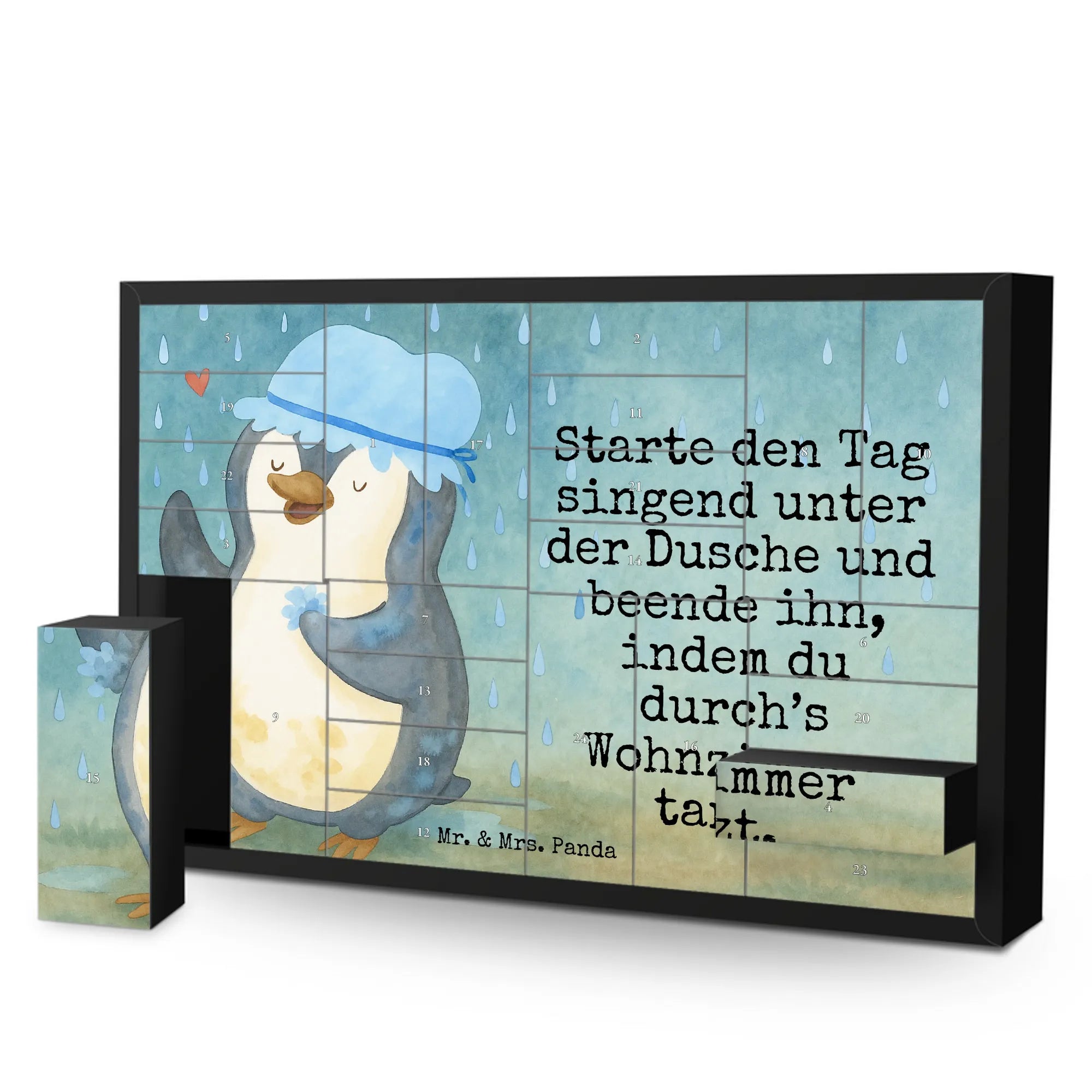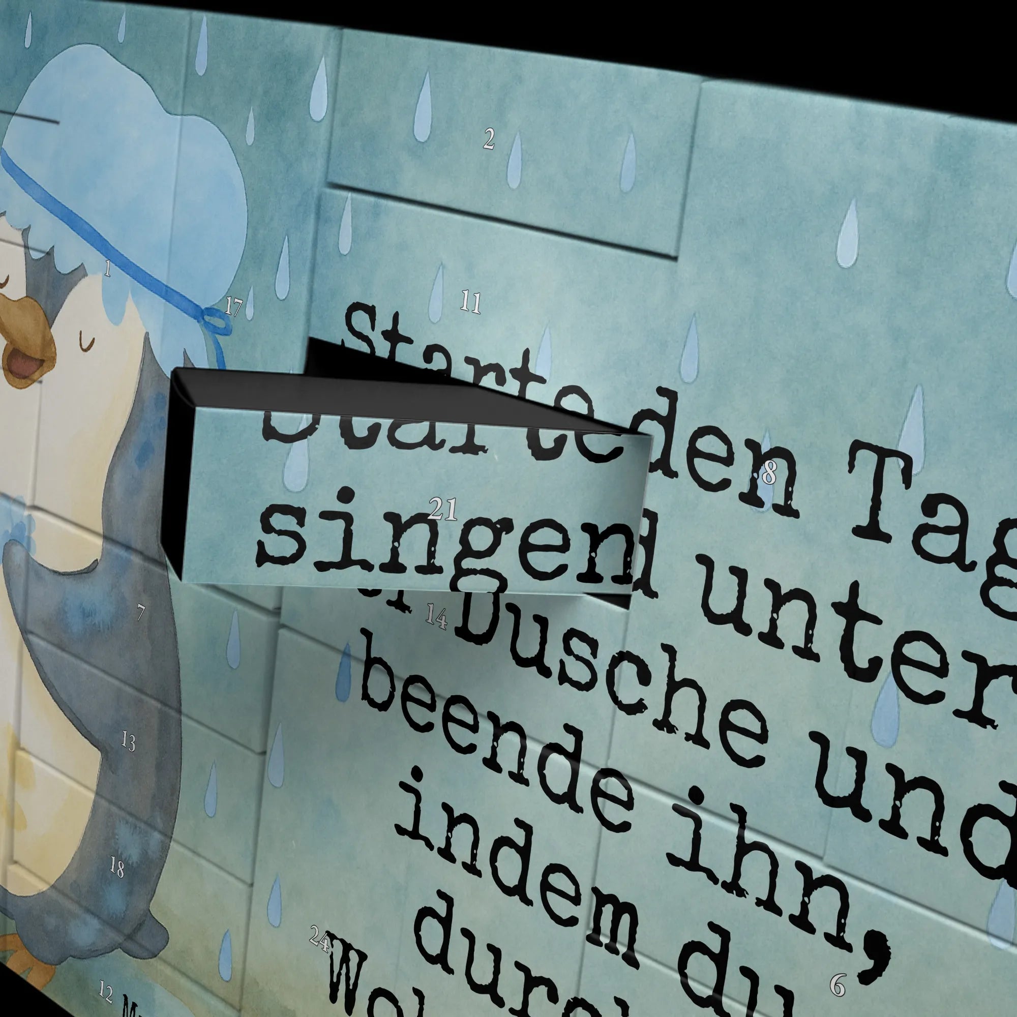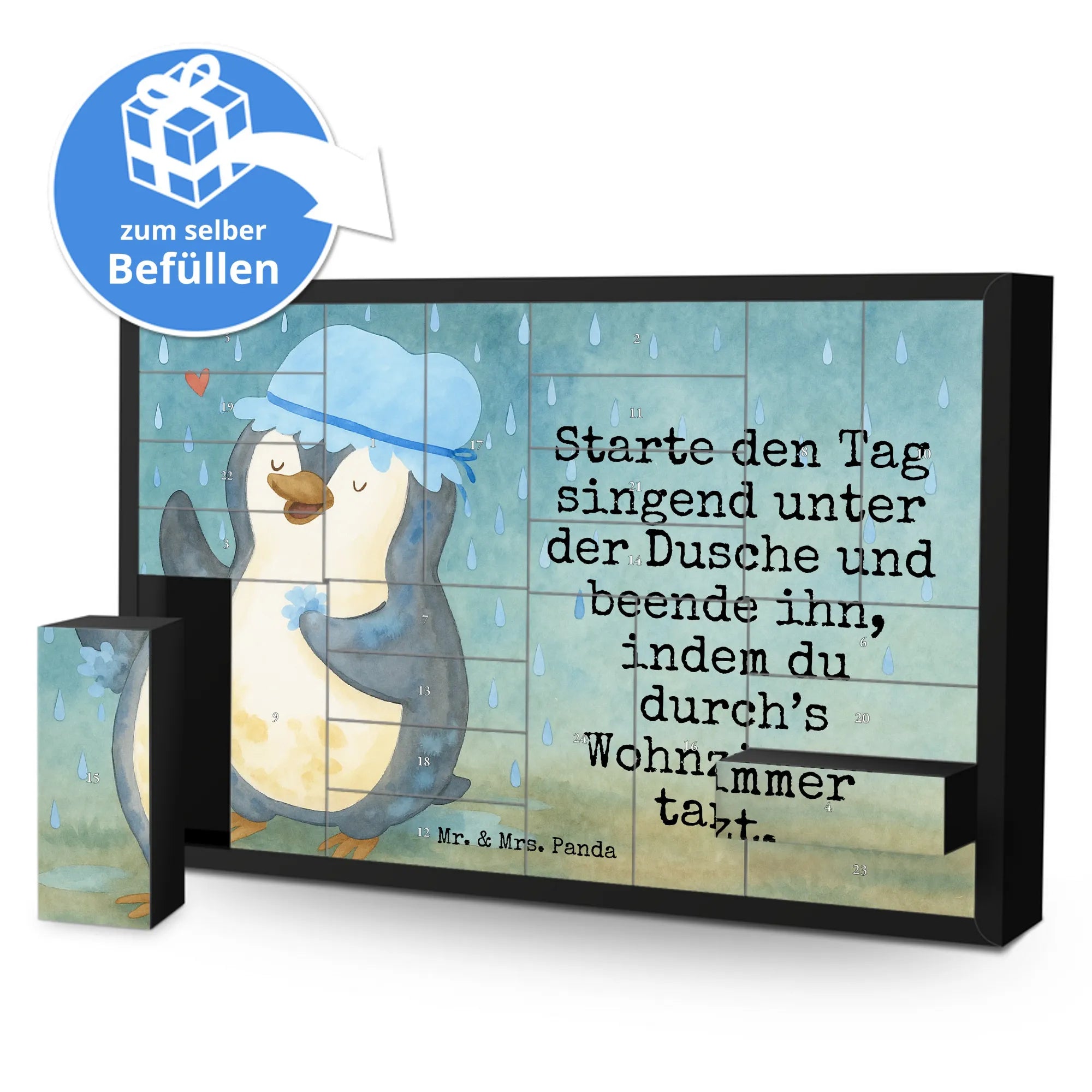 Fillable advent calendar Penguin have a shower Design - with saying
