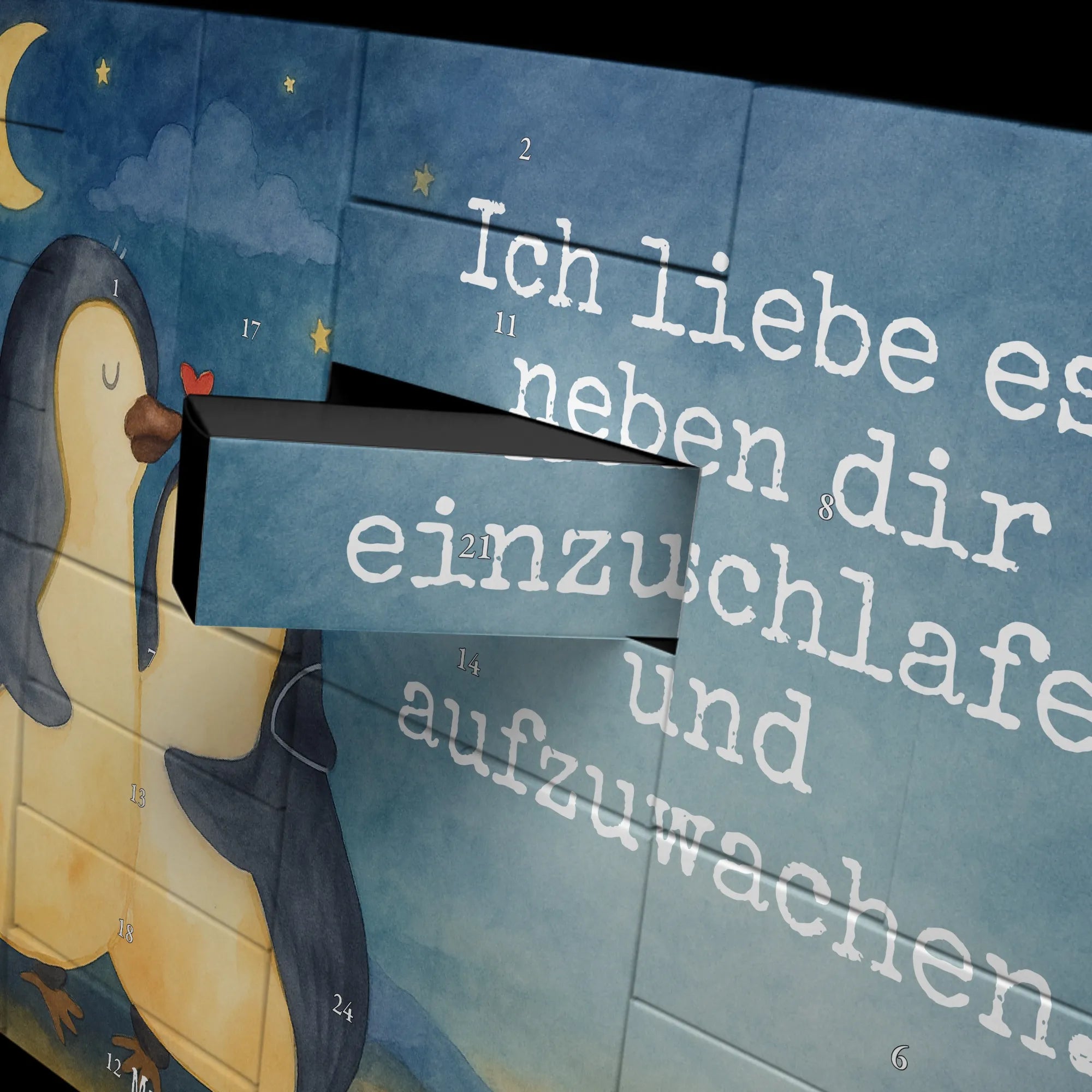 Fillable advent calendar penguins Fall asleep Design - with saying