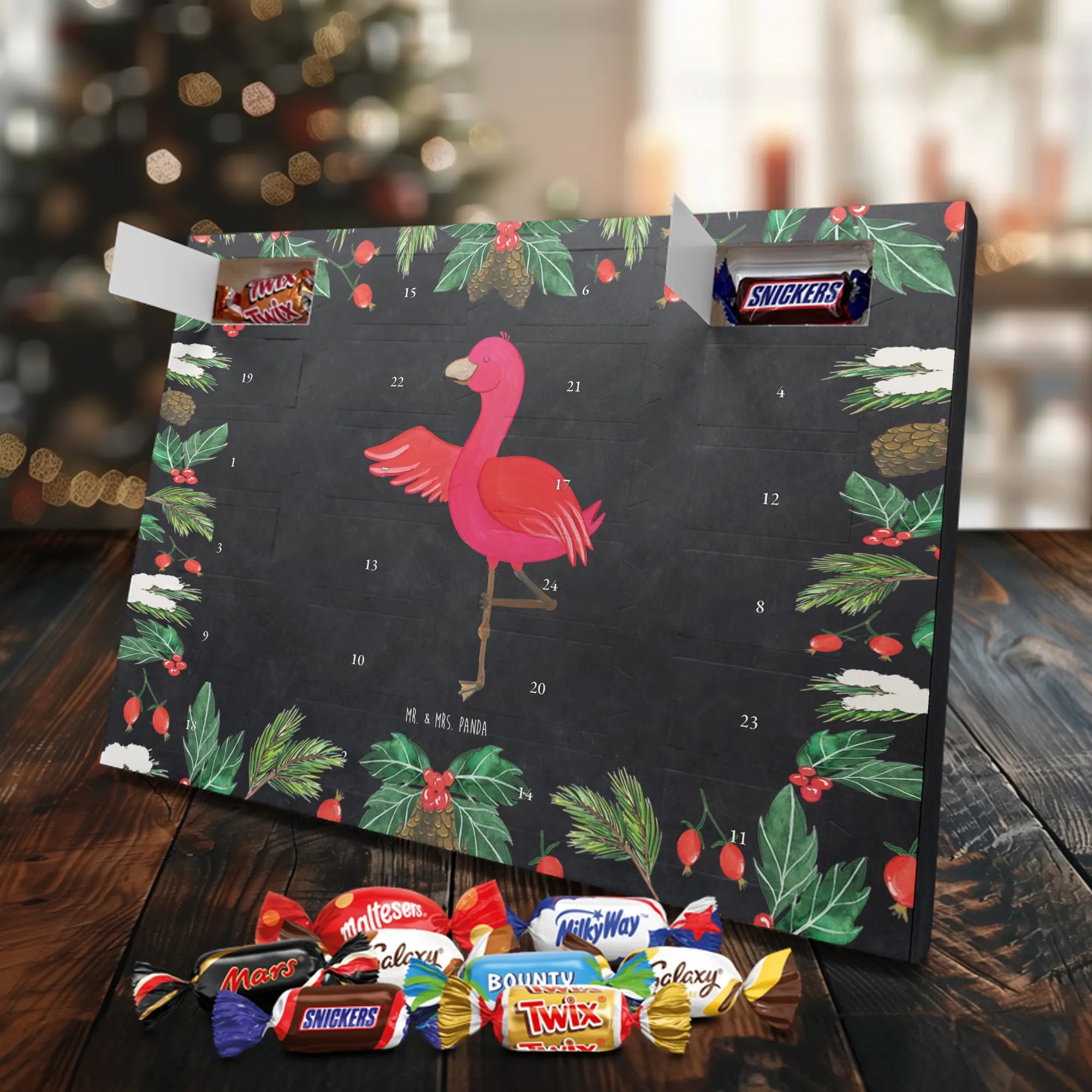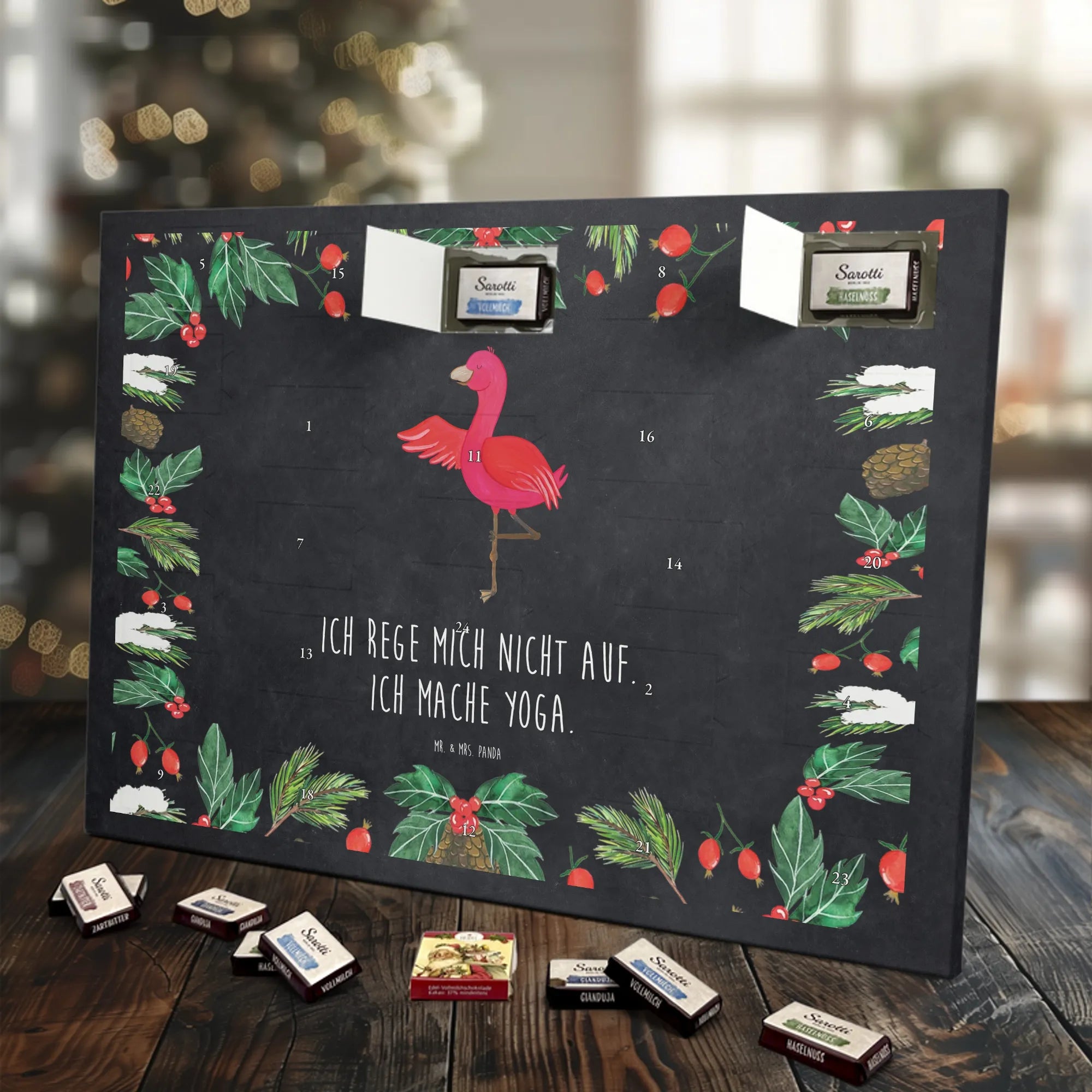 Chocolate advent calendar flamingo yoga - Classic - with saying - Ice Blue