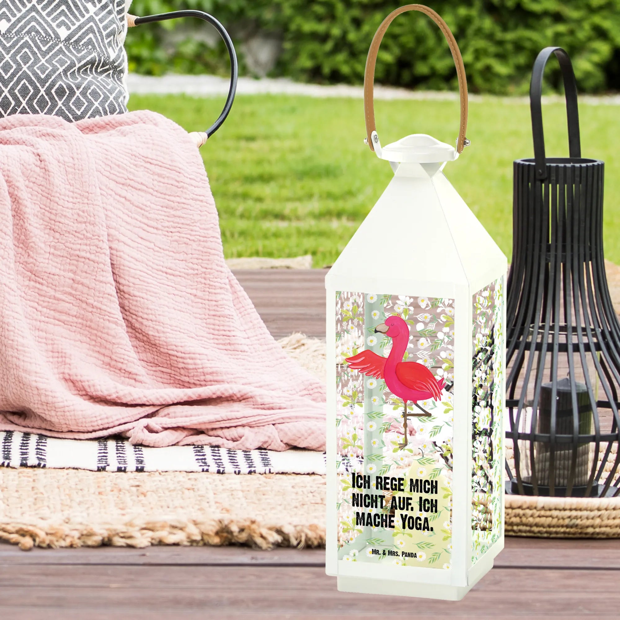 Decorative lantern flamingo yoga - S - with saying