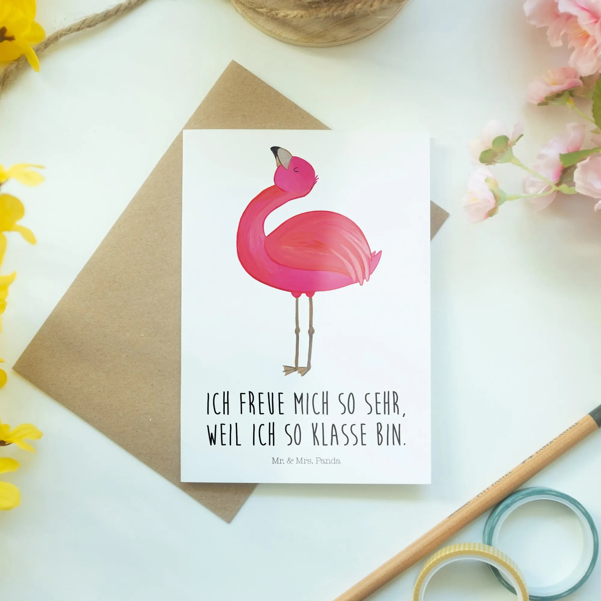 If you’re searching for that perfect gift that brings a splash of joy and a touch of elegance, look no further than the "Proud Flamingo" greeting card from the delightful Mr. & Mrs. Panda collection! This beautifully designed folding card showcases a proud flamingo in vibrant shades of pink, gracefully posing with its long neck and slender legs. The moment you see it, you’re transported to summer vibes, sunny beaches, and joyful moments spent with loved ones.