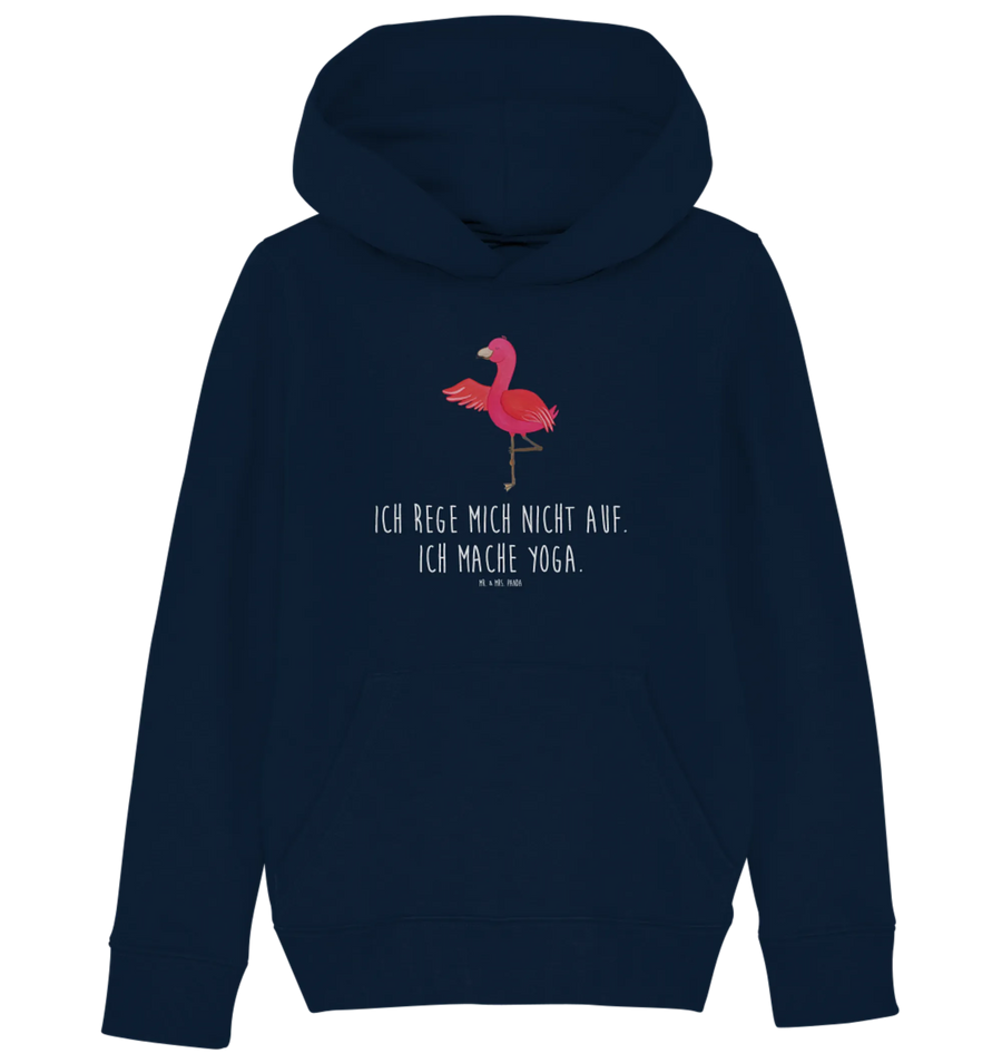 Organic Kids Hoodie flamingo yoga - 12-14 years (152/164) - with saying - French Navy