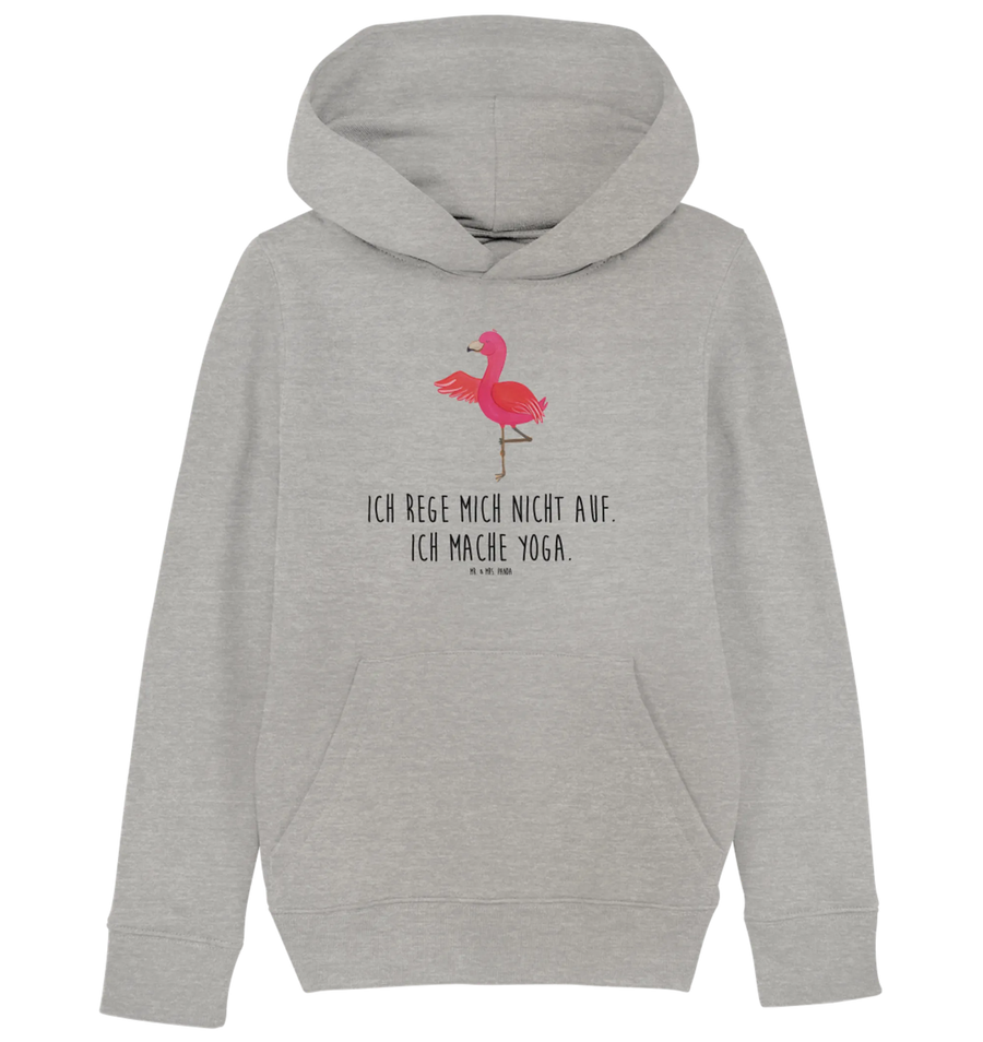 Organic Kids Hoodie flamingo yoga - 12-14 years (152/164) - with saying - Heather Grey