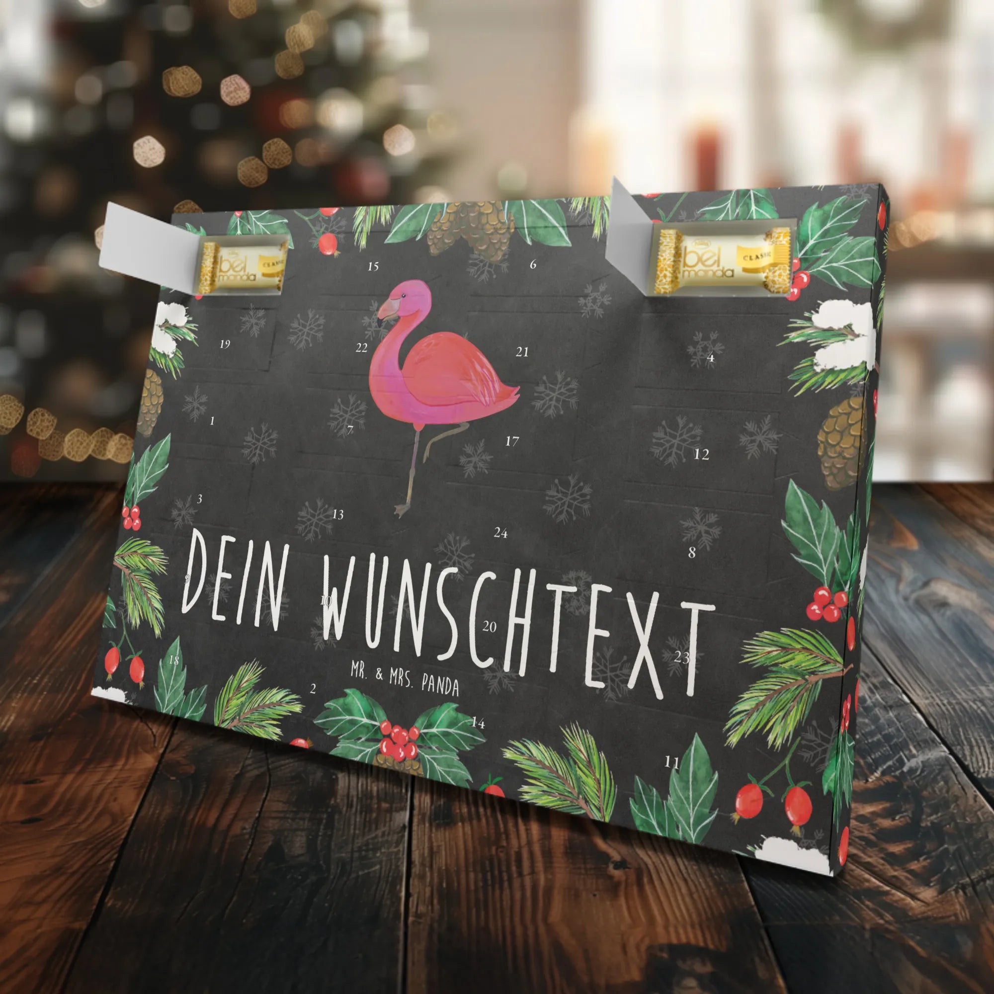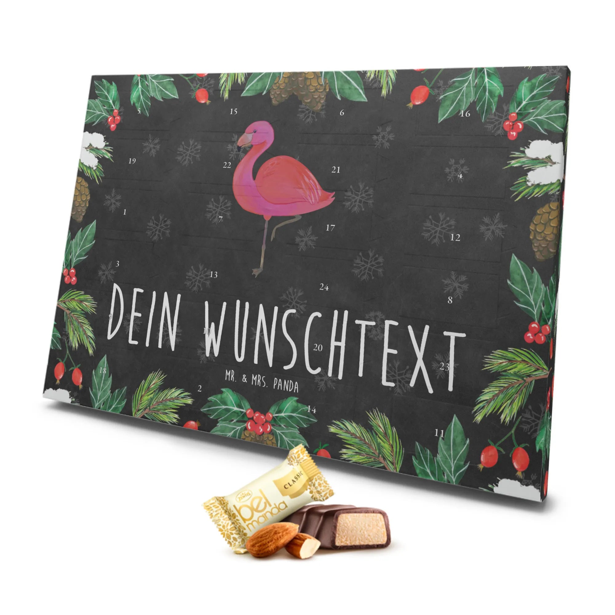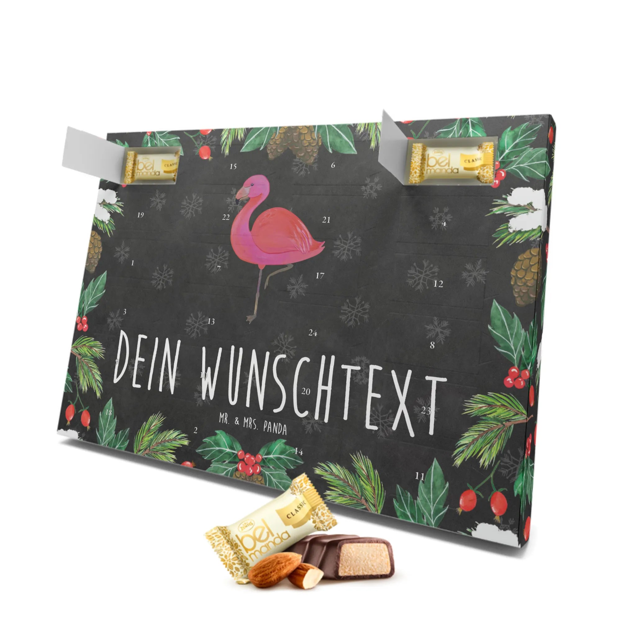 Personalisierter Marzipan Adventskalender Flamingo Classic – Mr. & Mrs. Panda