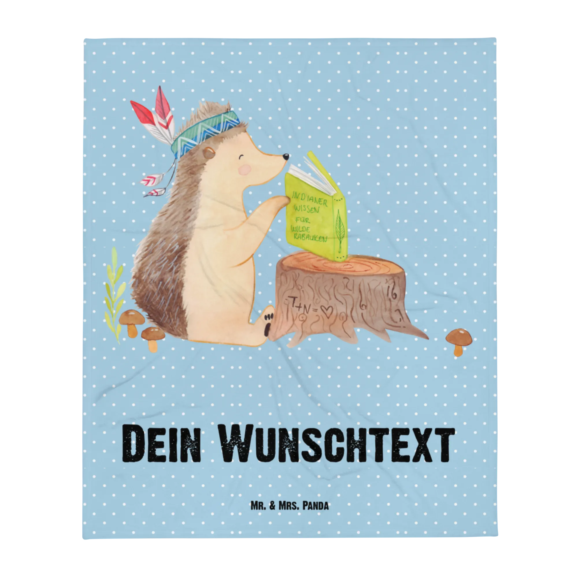 Baby blanket with name Hedgehog feather headdress - Pastel Yellow