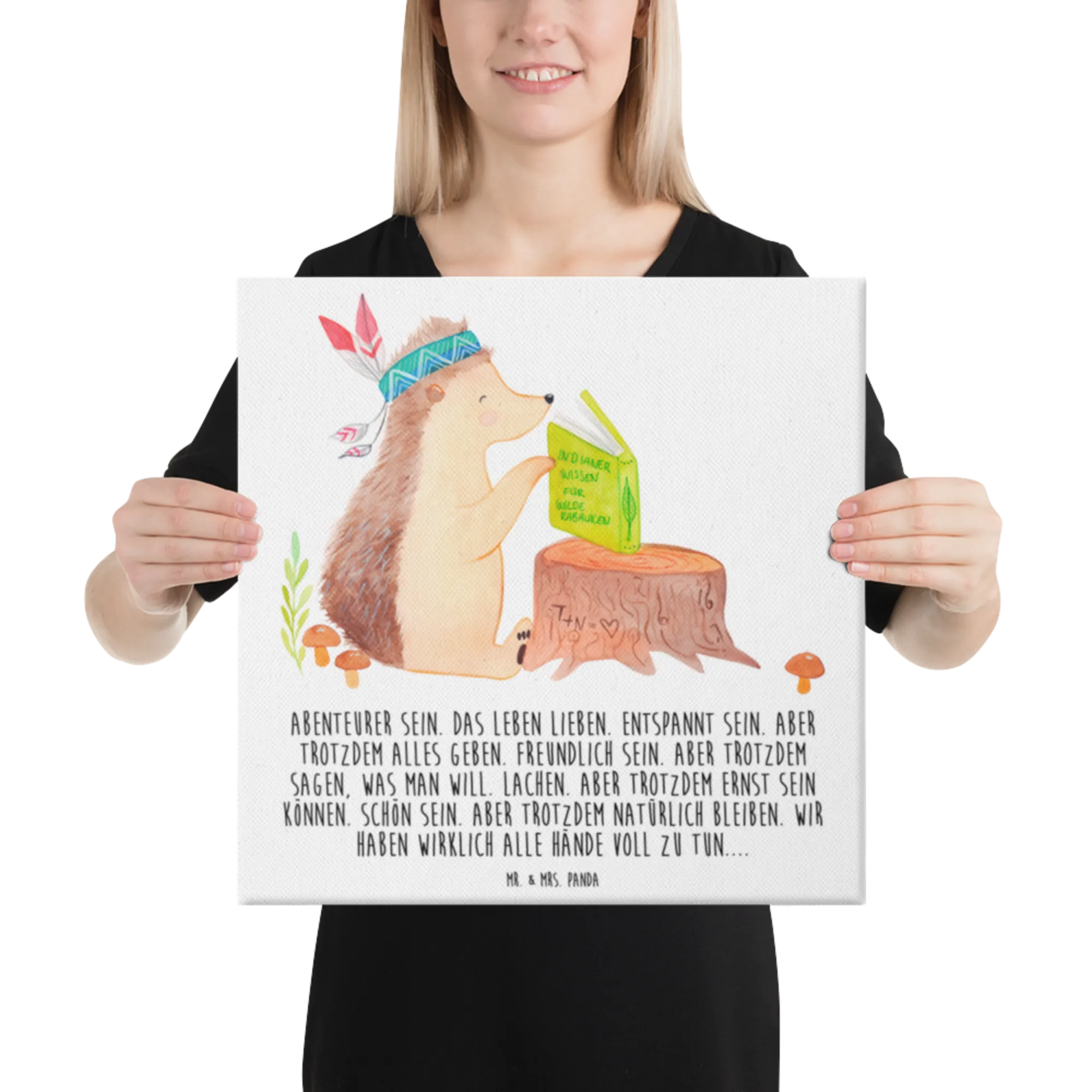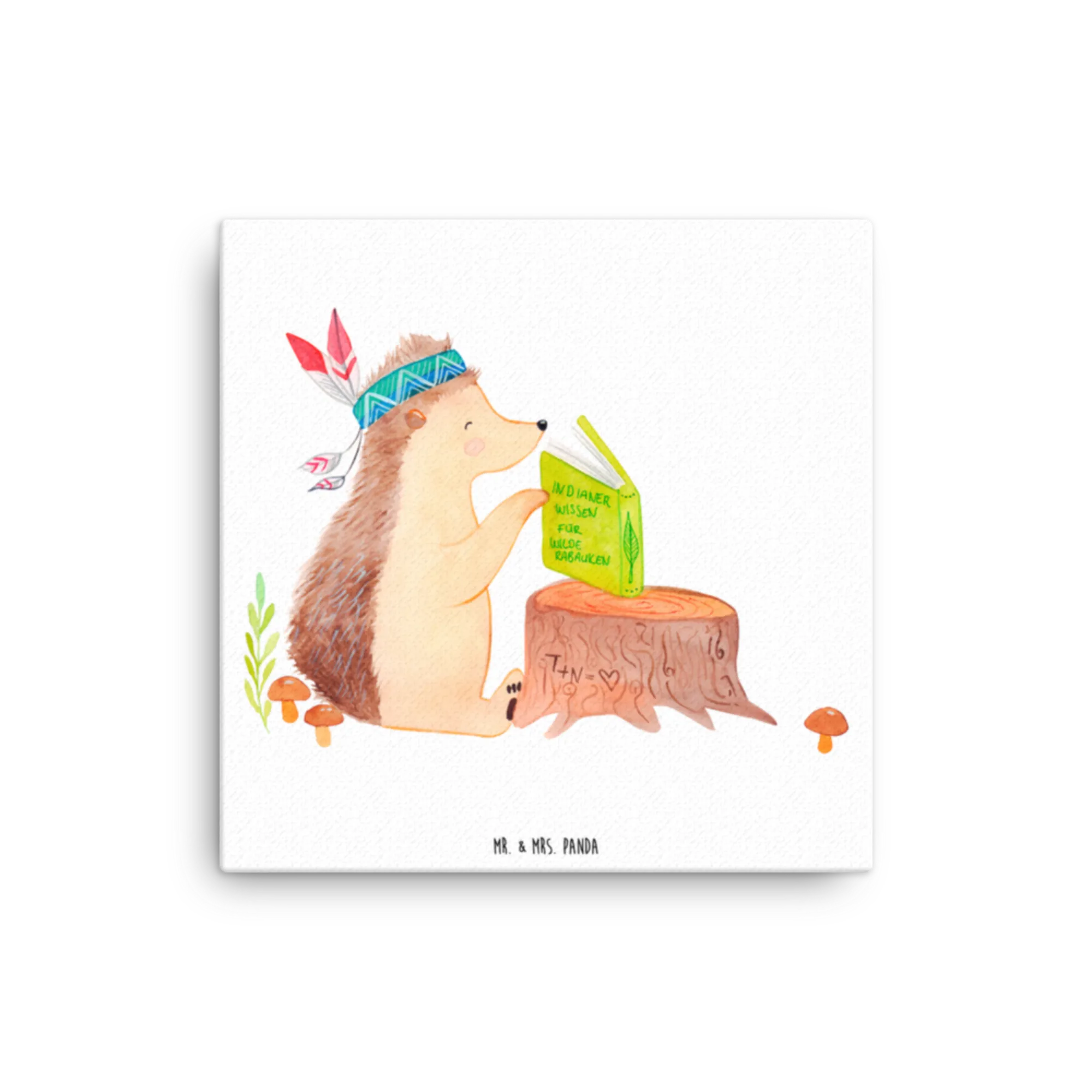 Canvas picture Hedgehog feather headdress - 40 x 40 cm - with saying - White