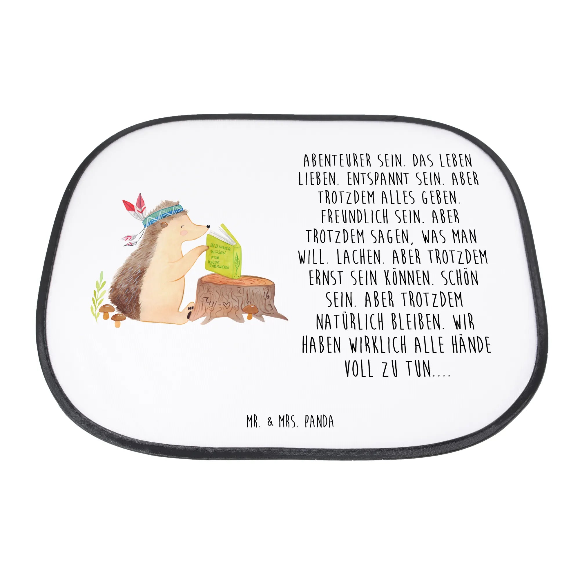 Car sun shade Hedgehog feather headdress - with saying - White