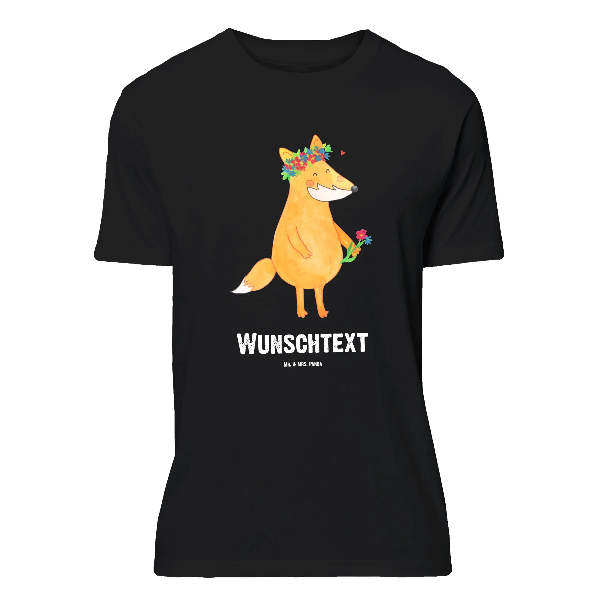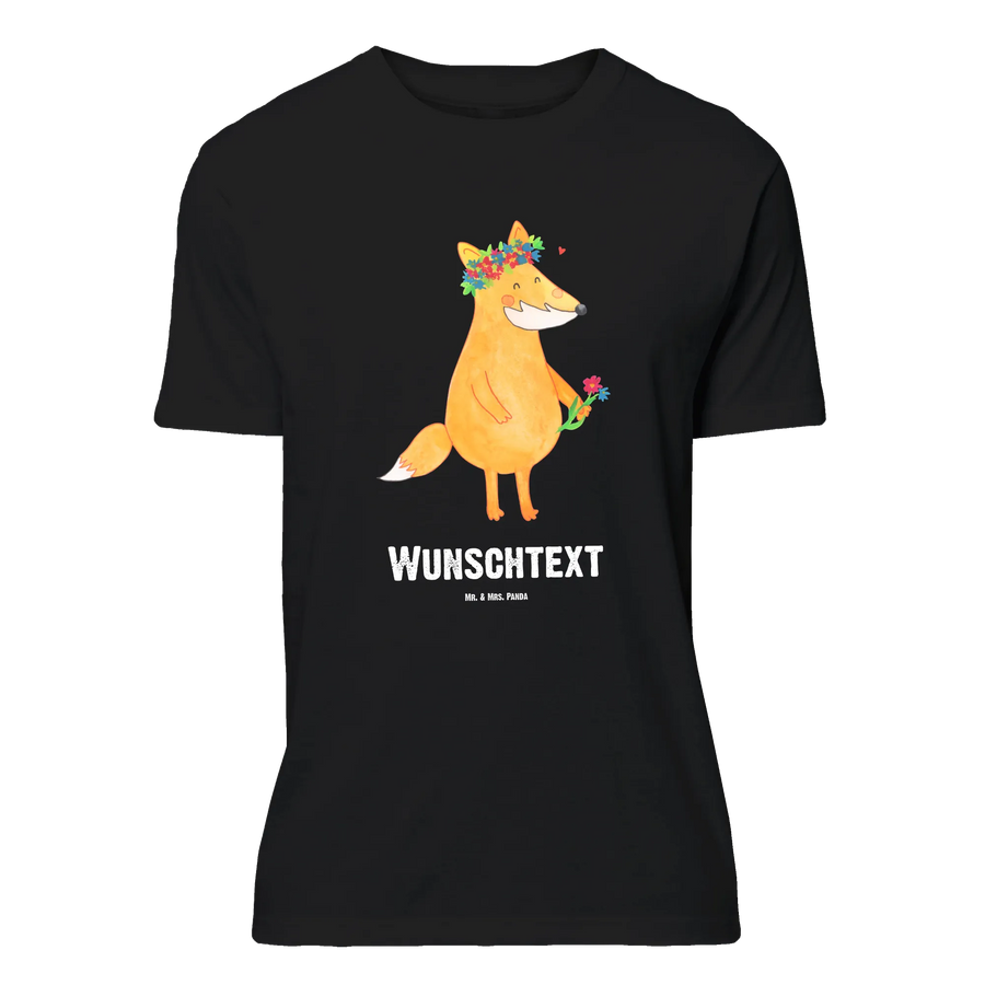 Personalised T-Shirt Fox Flower - Größe L Personalisiertes T-Shirt - Black
