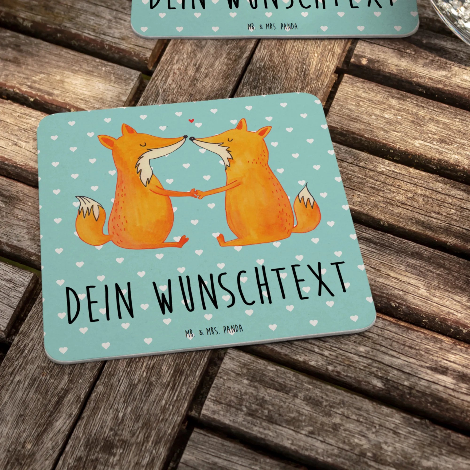 Personalisierter Bierdeckel Füchse Liebe – Mr. & Mrs. Panda