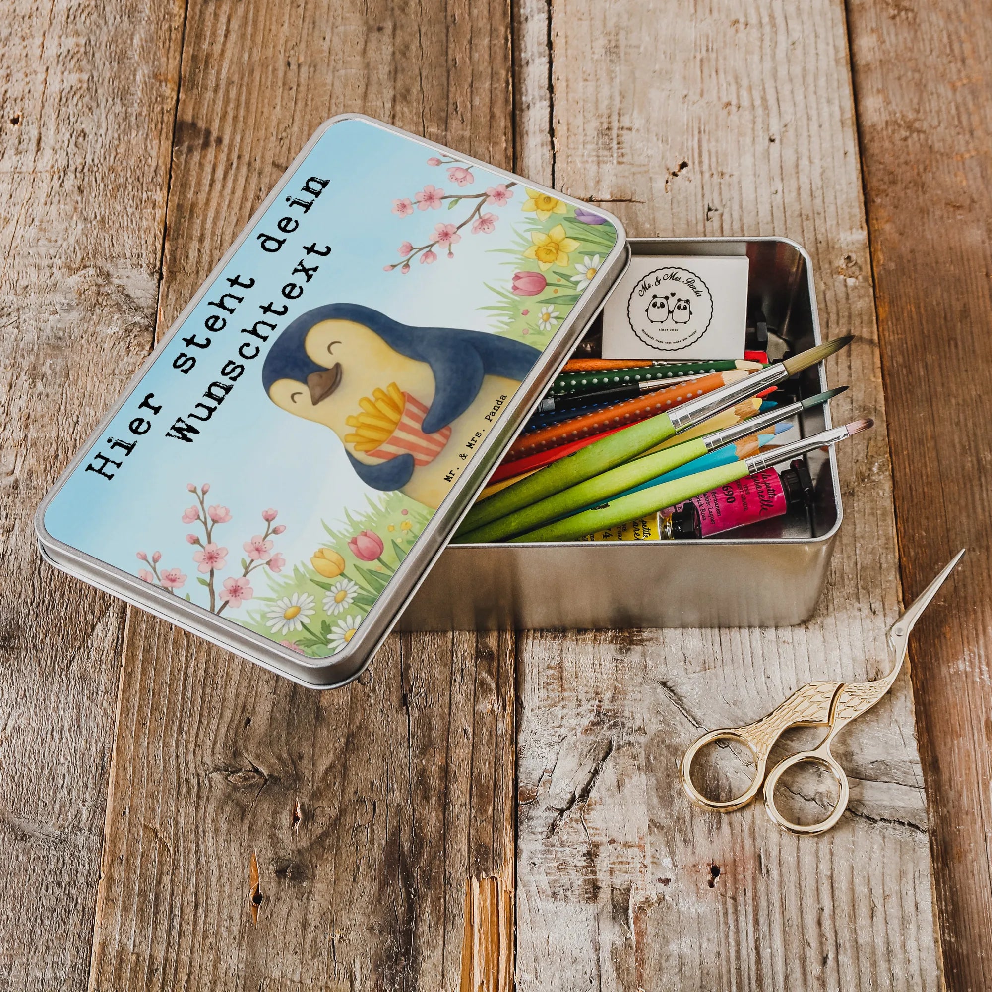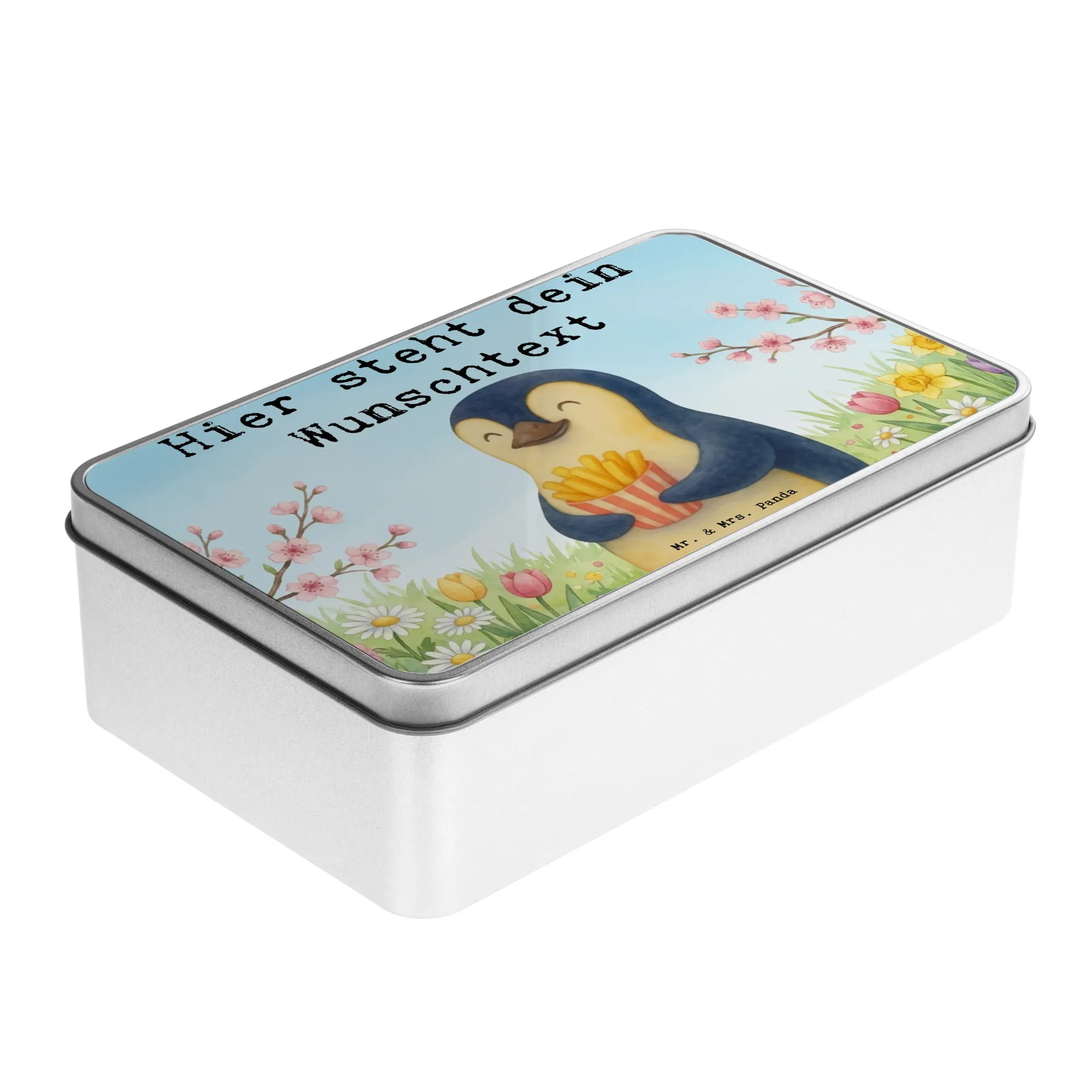 Personalised metal tin Pinguin Frühling Pommes Design