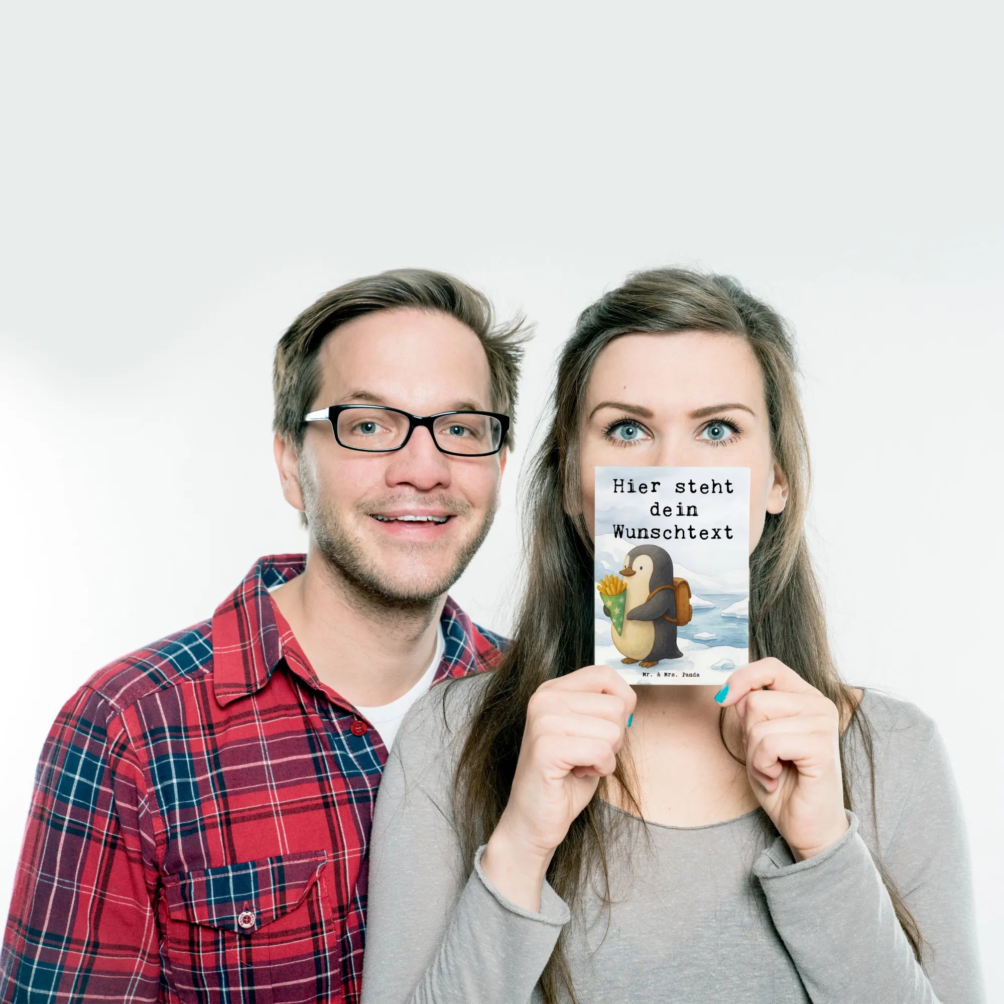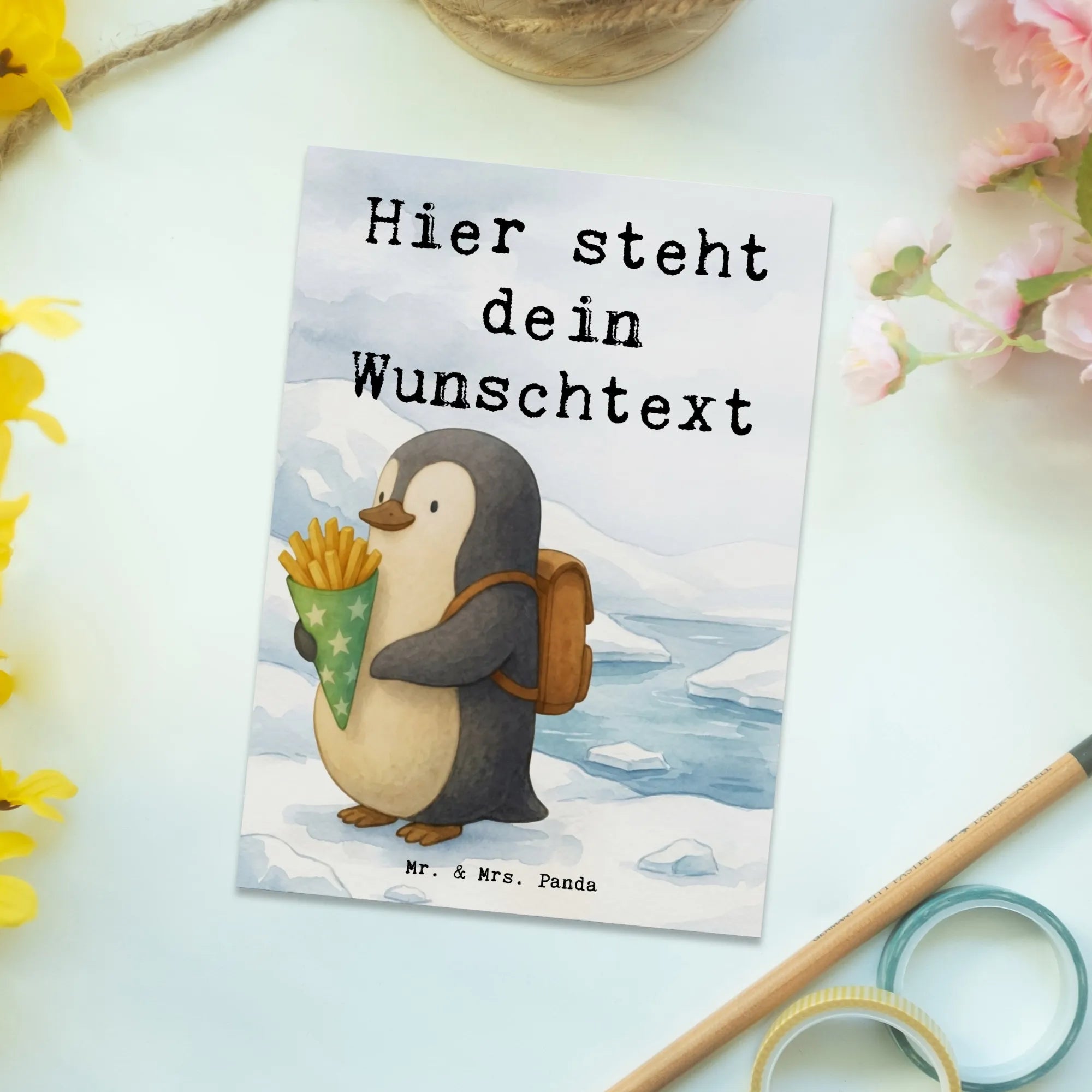 Personalised postcard Pinguin Pommestüte Design