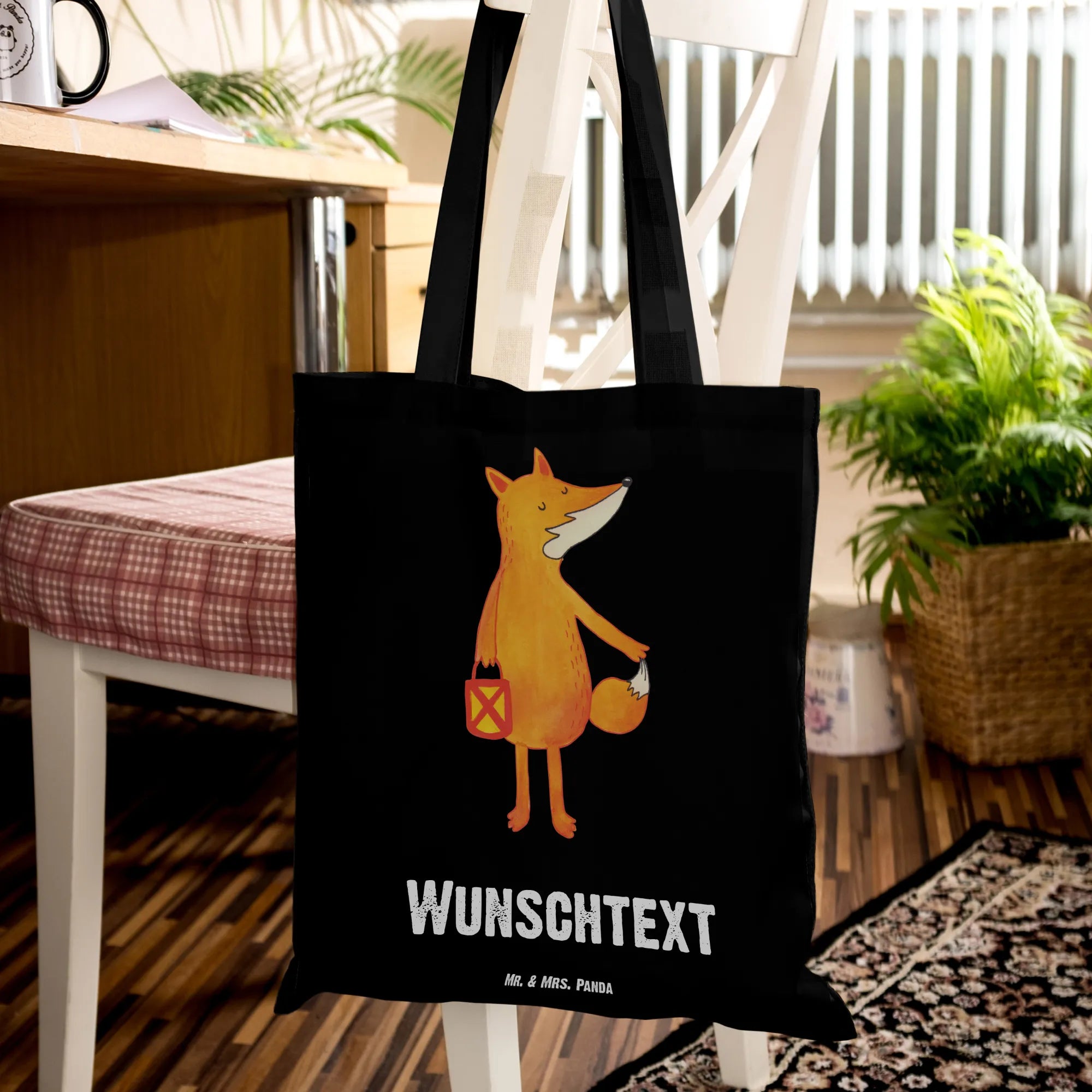 Personalised tote bag Fox Lantern - Black